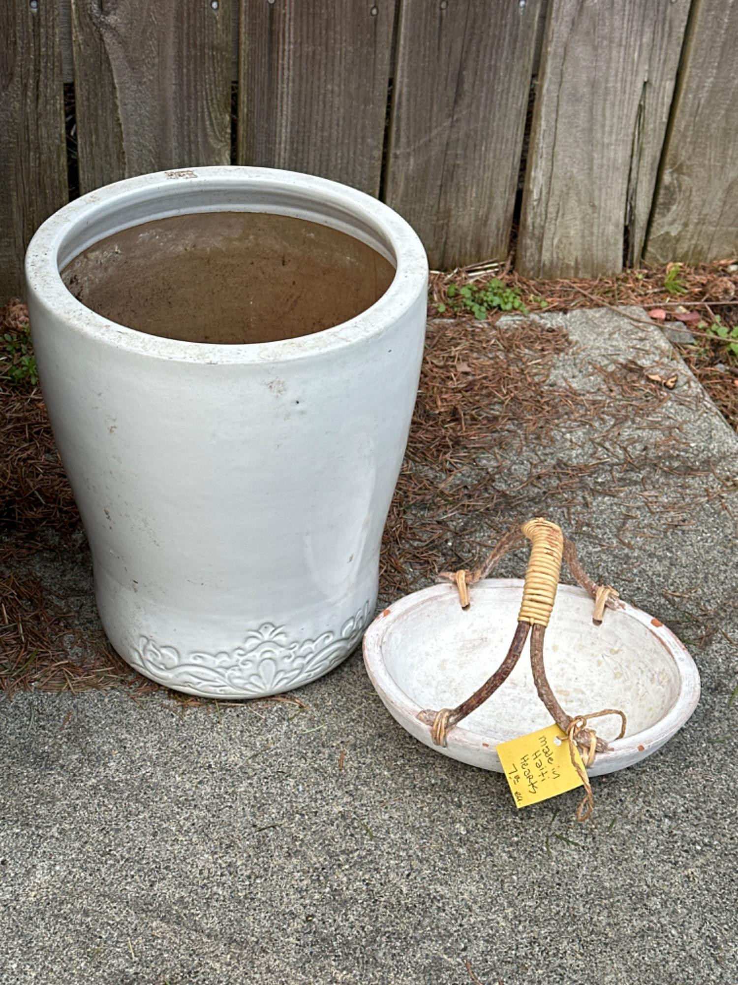Lot # 168 - White Glazed Planter/Pot & Haitian Basket Starting Bid: $ 5.00 Bids: This sale will end in: |