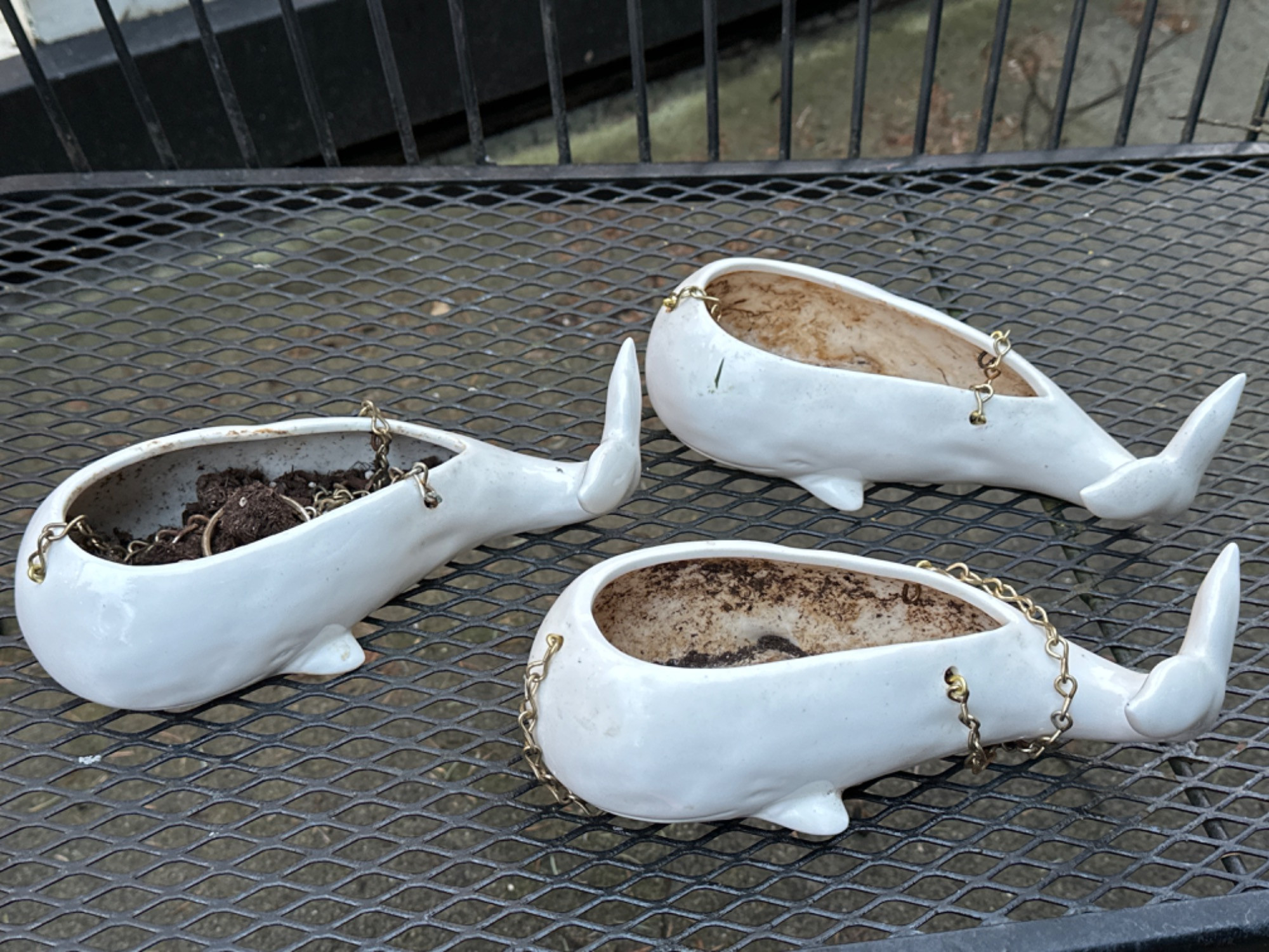 Lot # 179 - Whale Hanging Ceramic Planter Trio Starting Bid: $ 5.00 Bids: This sale will end in: |