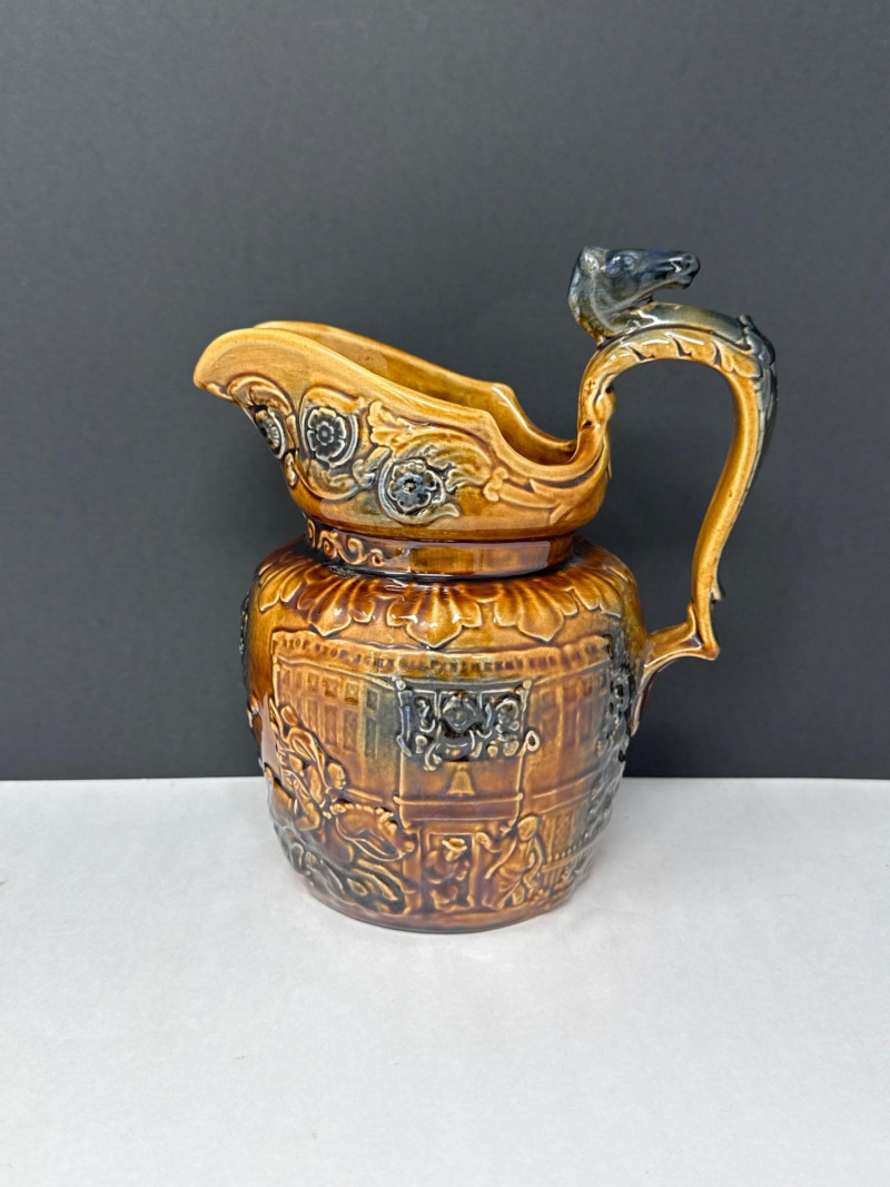 Lot # 26 - Vintage Arthur Wood England Relief-Molded Glazed Pitcher Starting Bid: $ 5.00 Bids: Bidding starts in: |