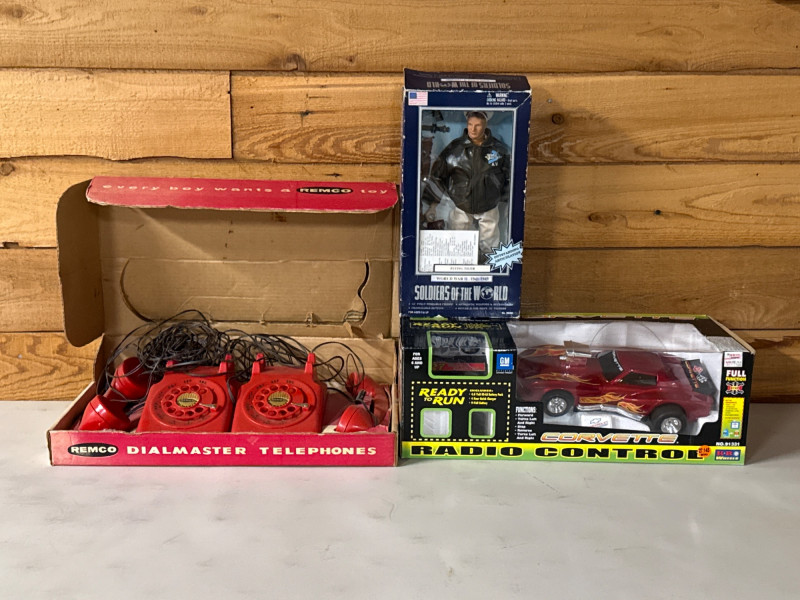 Lot # 73 - Vintage Toy Trio- Remco Dialmaster, Corvette RC Car & More Starting Bid: $ 5.00 Bids: Bidding starts in: |