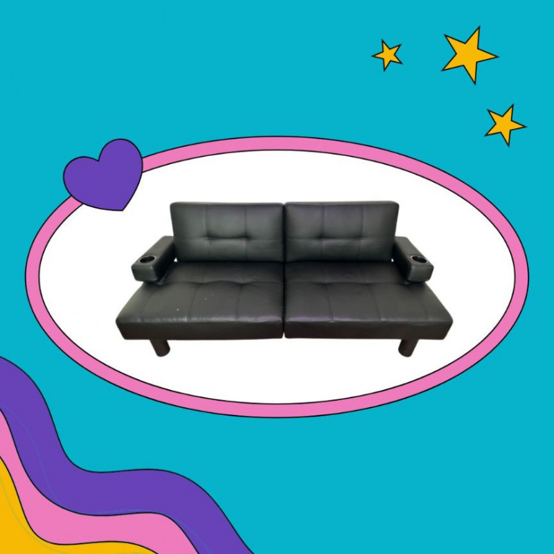 Lot # 66 - Black Pleather FUTON Couch/Bed- Full Size-Read Details Starting Bid: $ 5.00 Bids: Bidding starts in: |
