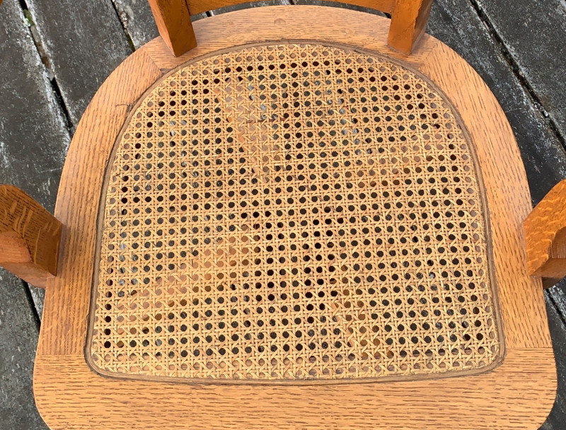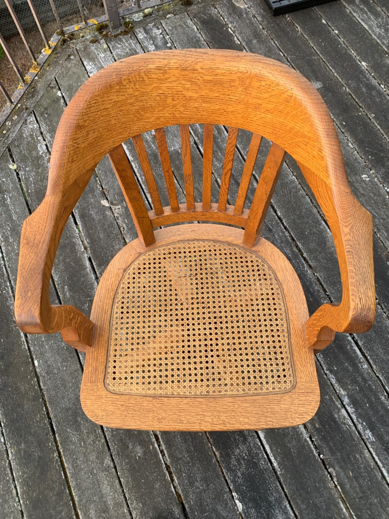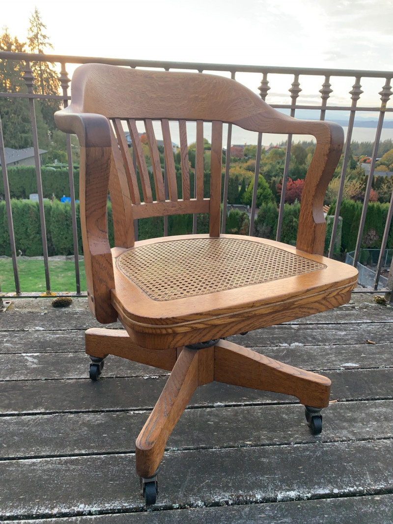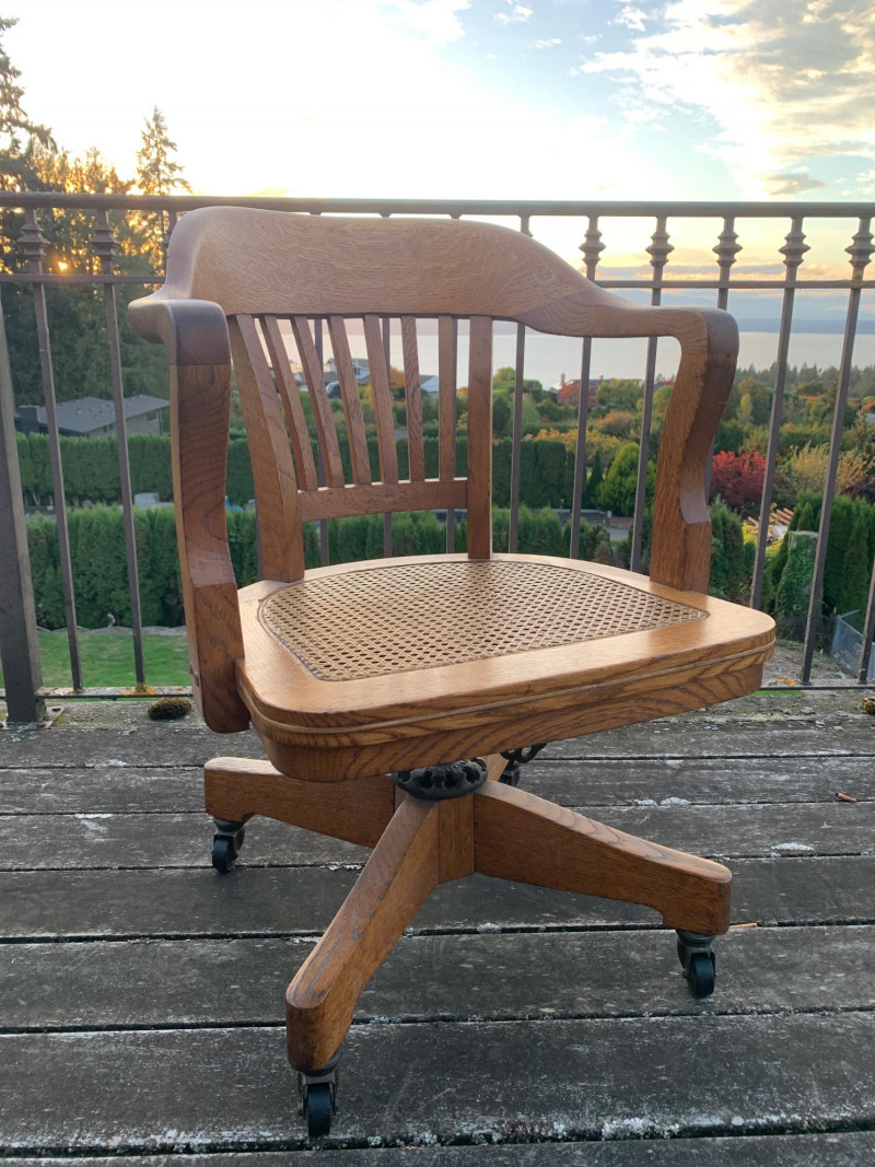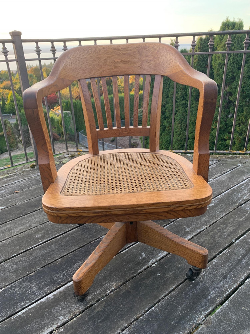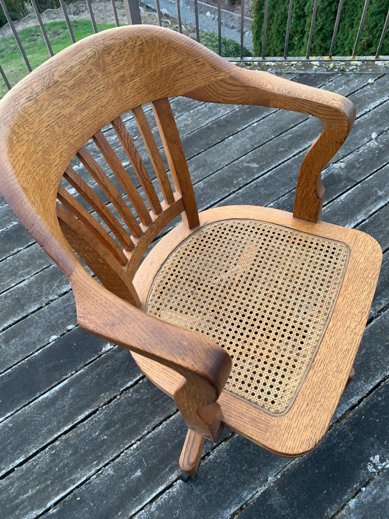 Lot # 6 - Vintage Milwaukee Co. Tilting Oak Banker's Chair with Cane Seat