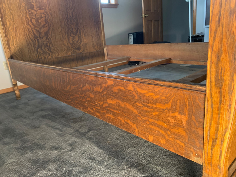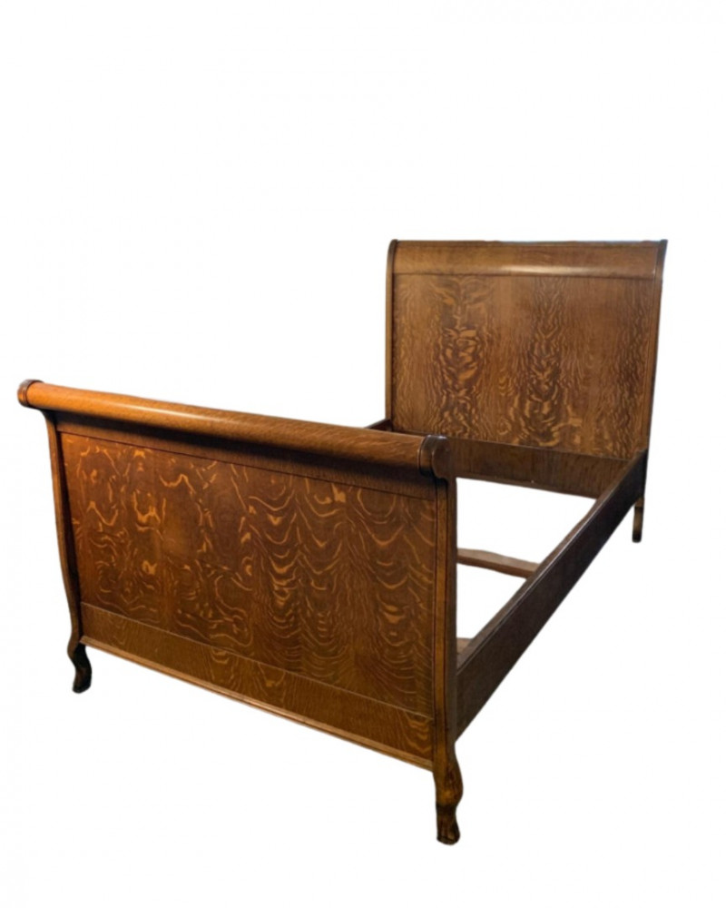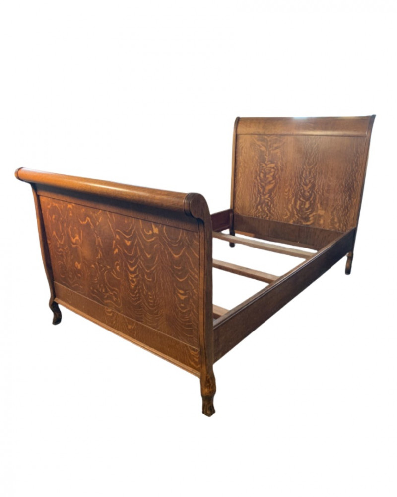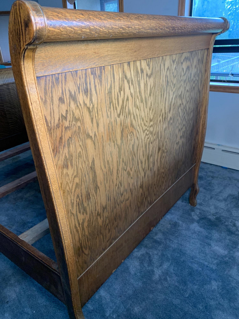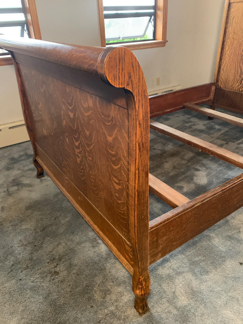Lot # 27 - Magnificent Antique Victorian Tiger Oak Sleigh Bed Frame