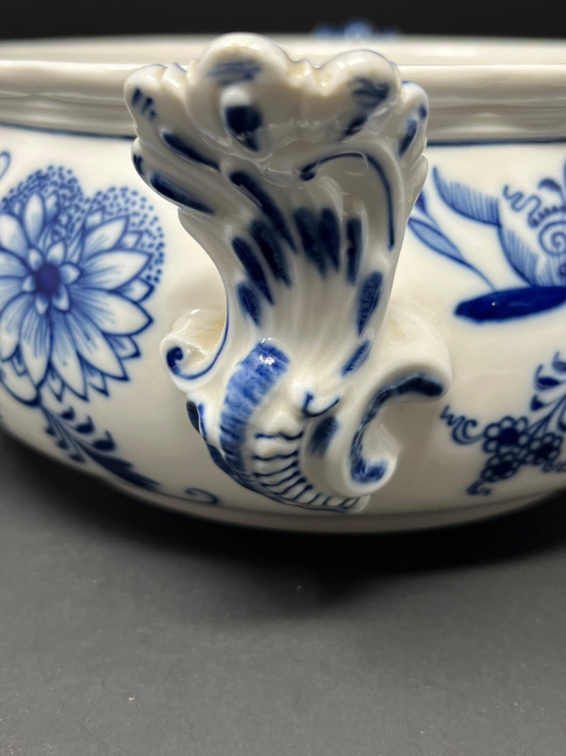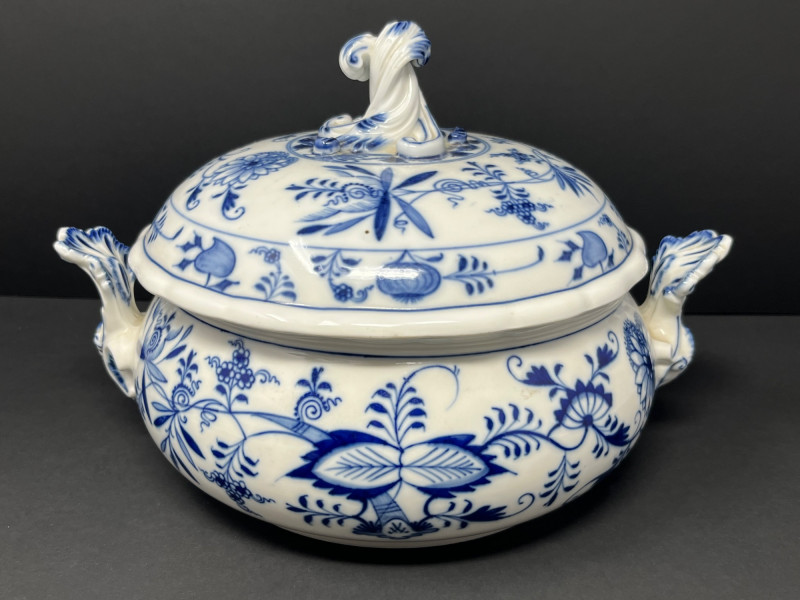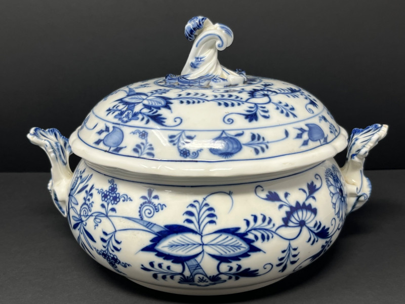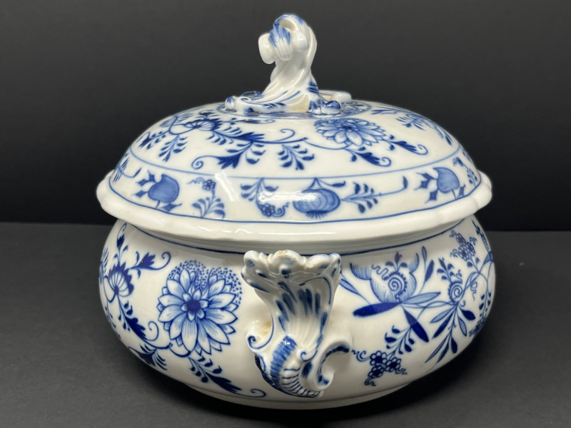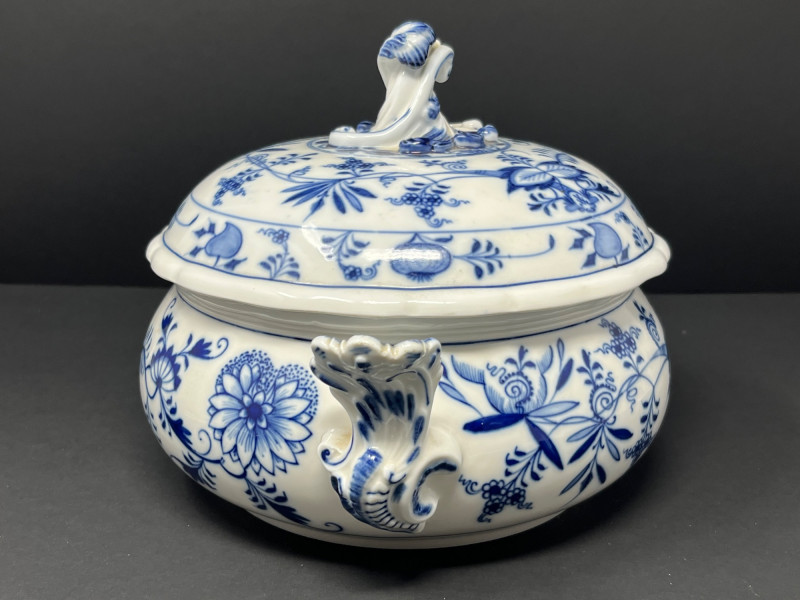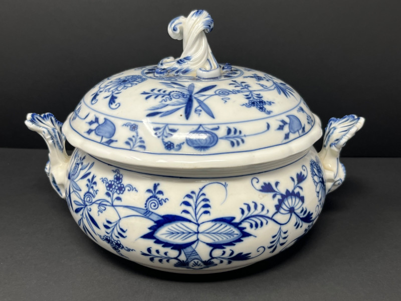 Lot # 30 - Meissen Blue Onion Covered Tureen – Sculpted Handles & Leaf Finial