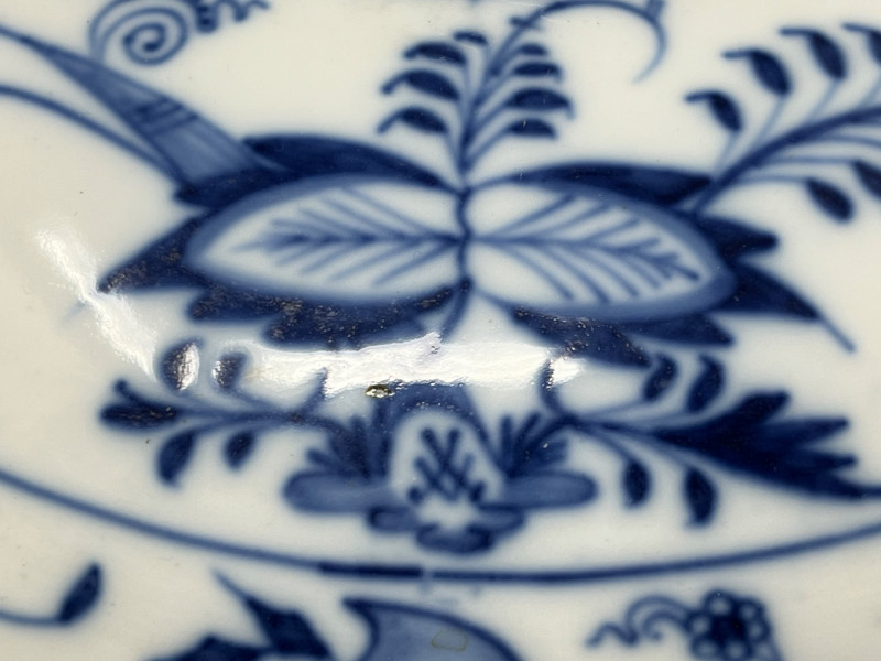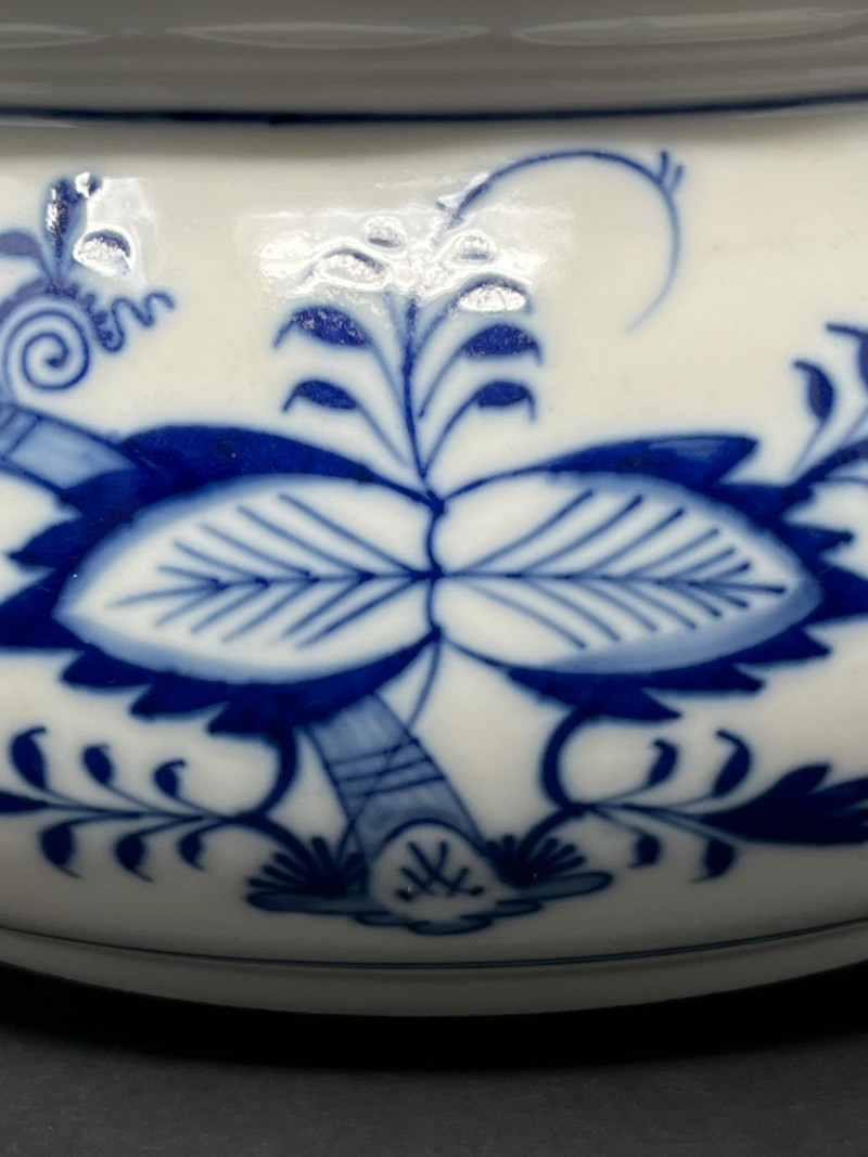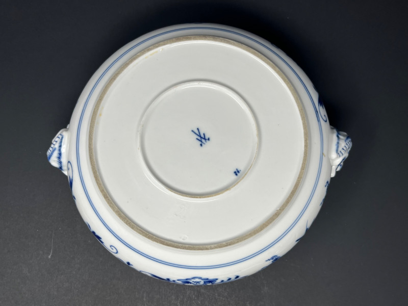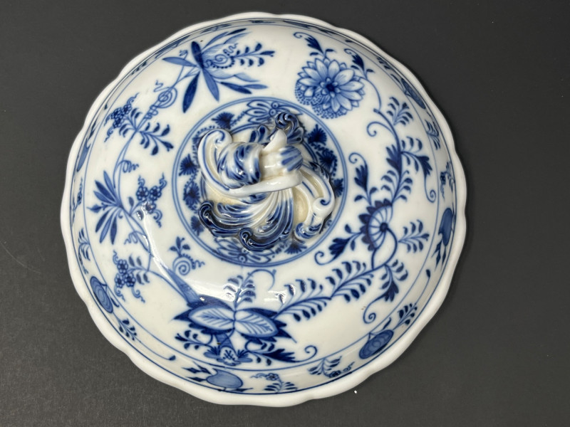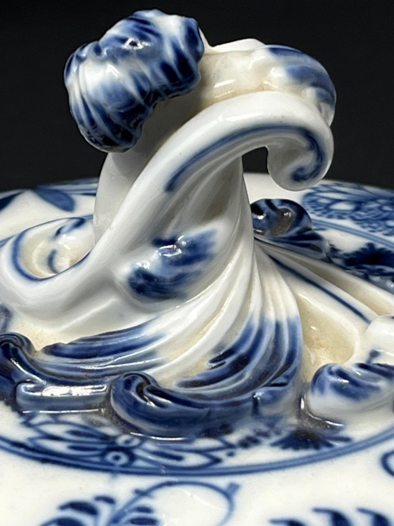 Lot # 30 - Meissen Blue Onion Covered Tureen – Sculpted Handles & Leaf Finial