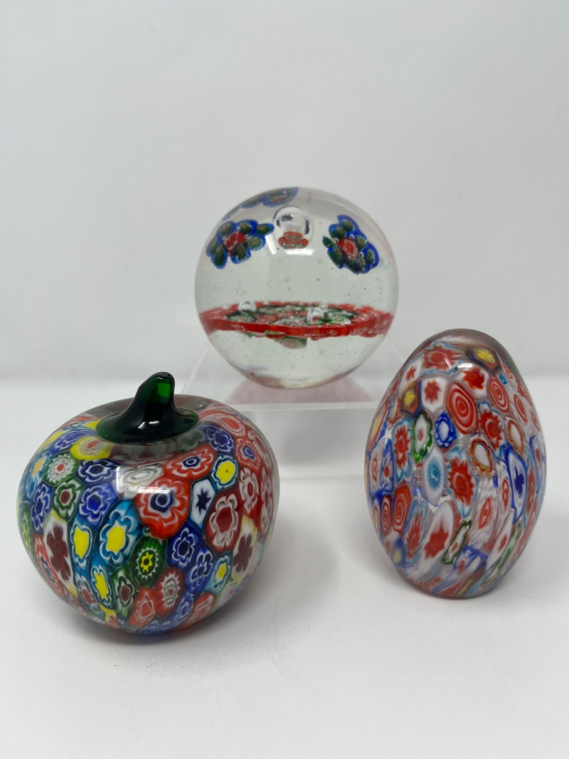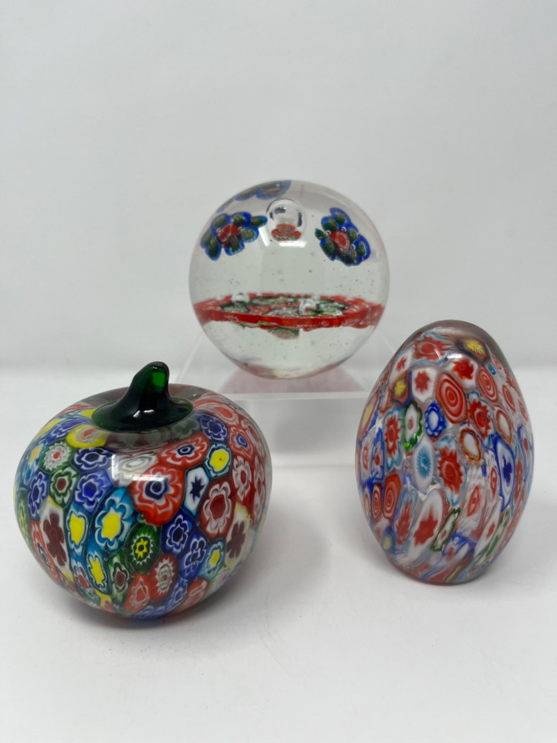 Lot # 48 - Murano Millefiori Trio – Pumpkin, Paperweight & Oval Sculpture