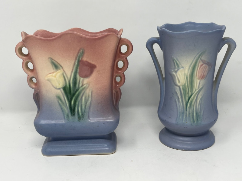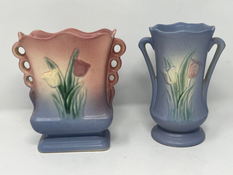 Lot # 58 - Hull Art Pottery Tulip Vase Duo – Pink & Purple Gradient