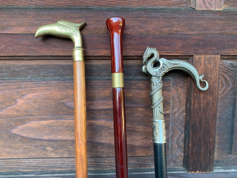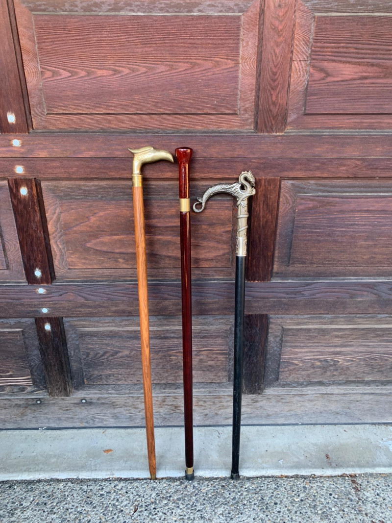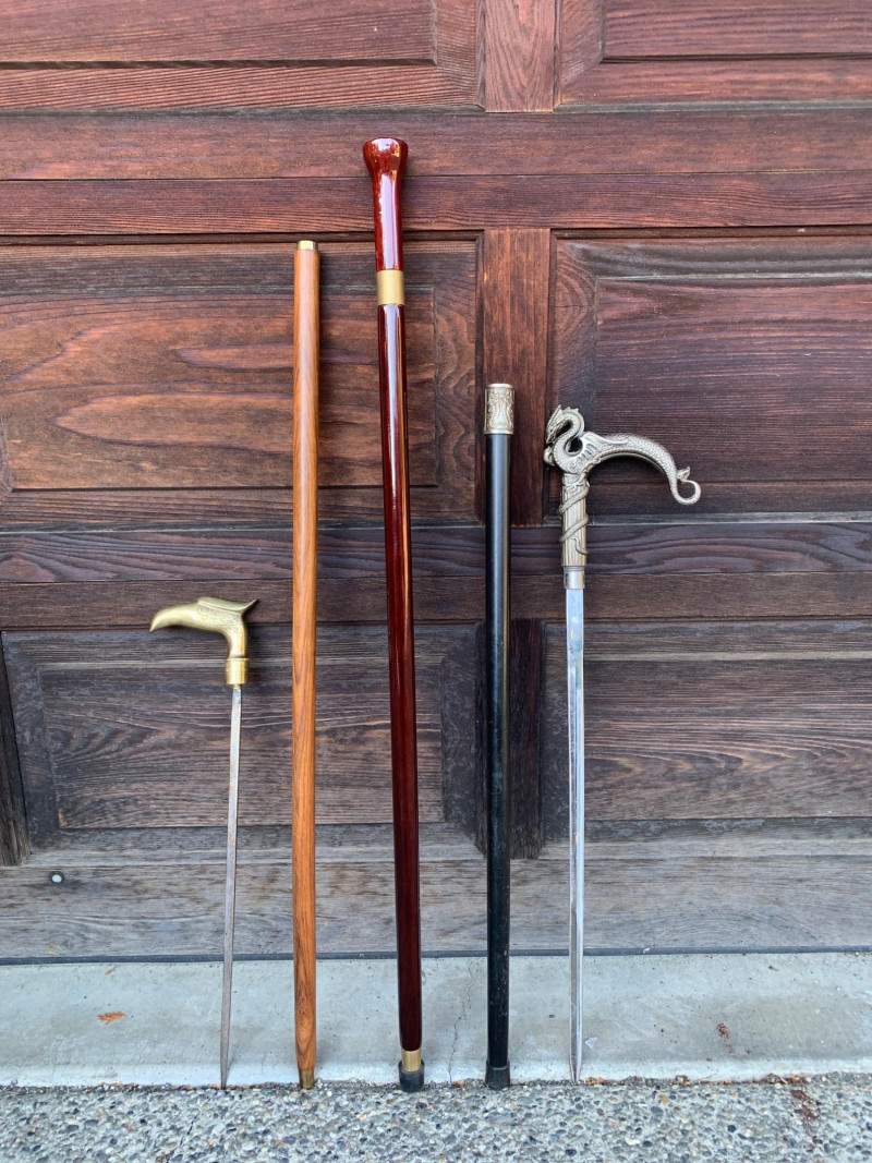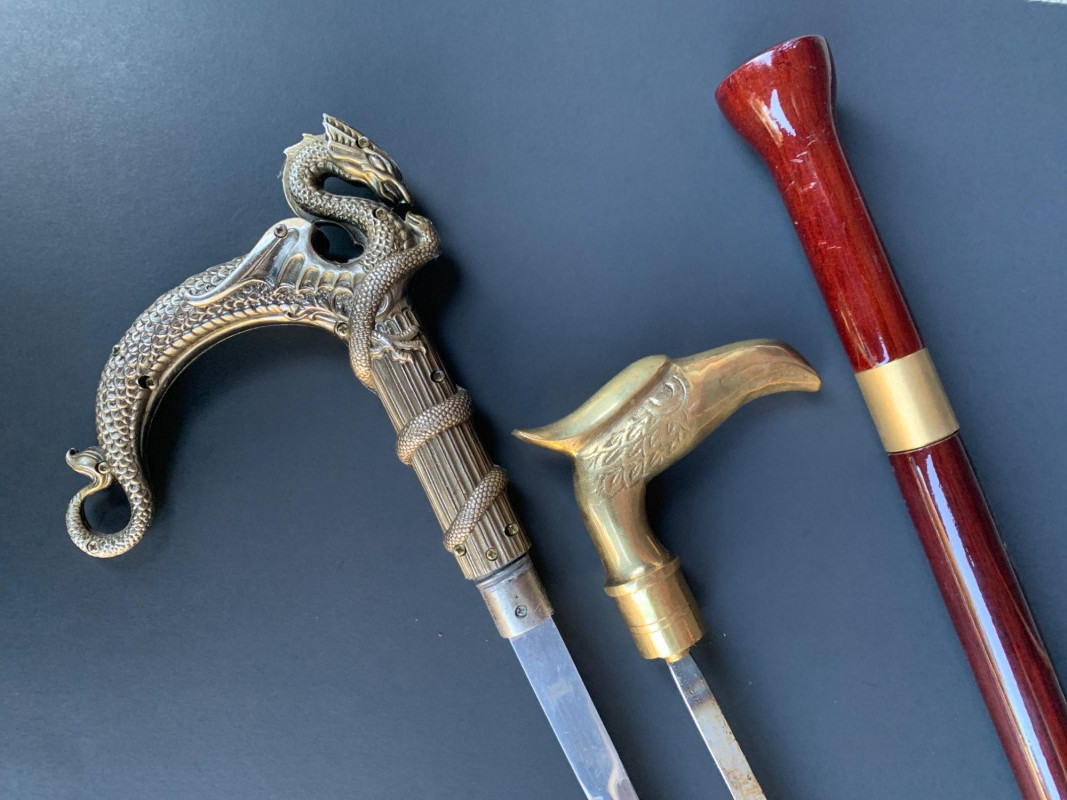 Lot # 63 - Collection of Vintage Sword Canes – Brass Eagle, Dragon Head and More