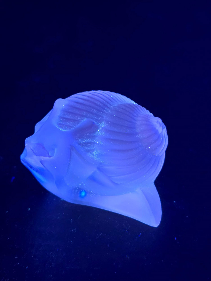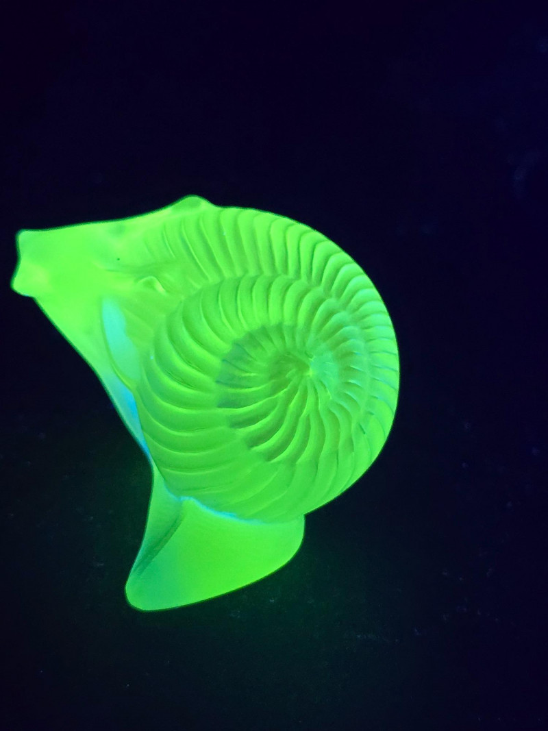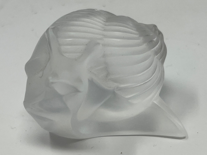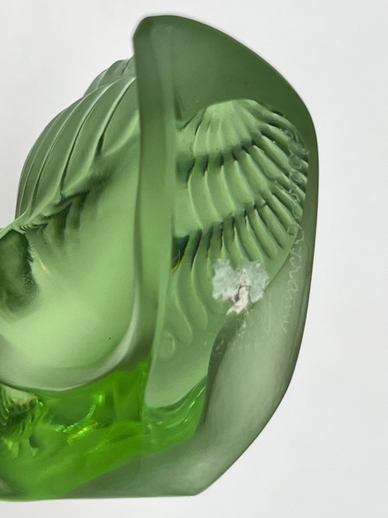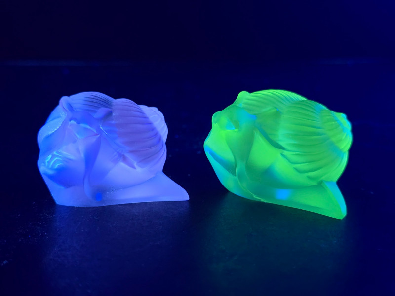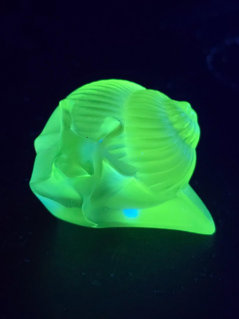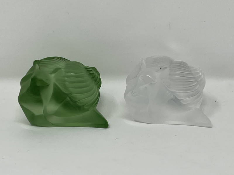 Lot # 91 - Lalique Crystal Snail Figurines - Green & Clear "Helix" Models UV Glow