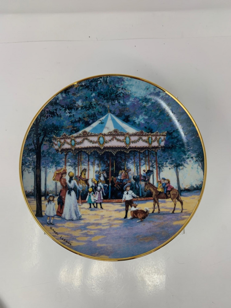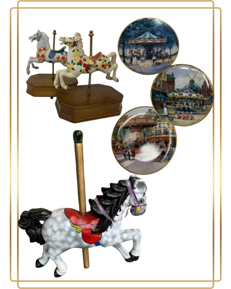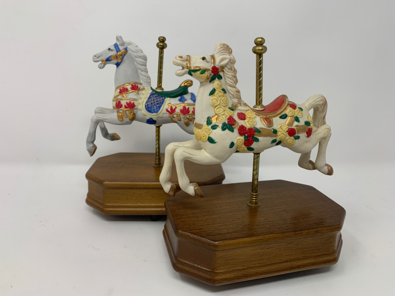 Lot # 99 - "Carousel Adventures" Sandi Lebron Plate Set, Music Box & Horse Decor