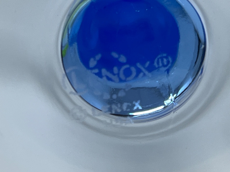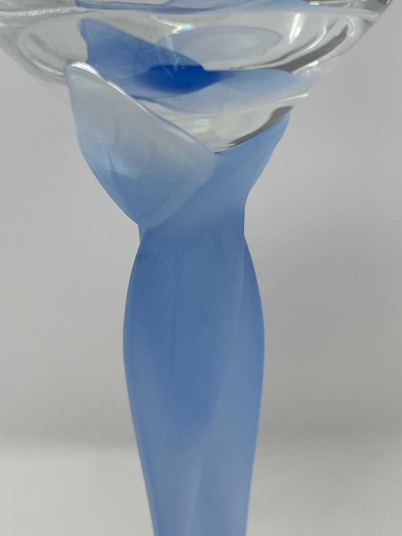 Summary: A graceful set of six Lenox Spring Mist wine glasses featuring clear bowls atop frosted blue stems and bases. These 8" tall glasses blend classic Lenox crystal clarity with a subtle pop of color, ideal for spring and summer entertaining. Discontinued and increasingly collectible, this set offers timeless elegance with a touch of modern flair. Maker: Lenox Pattern: Spring Mist Material: Crystal Color: Clear bowl with frosted blue stem and base Dimensions: Approx. 8" H × 3" W Design Features: Smooth rounded bowl Slender frosted stem Wide flat base Era: Discontinued pattern; likely 1990s–2000s Condition: Excellent; no chips or cracks notedItem Details