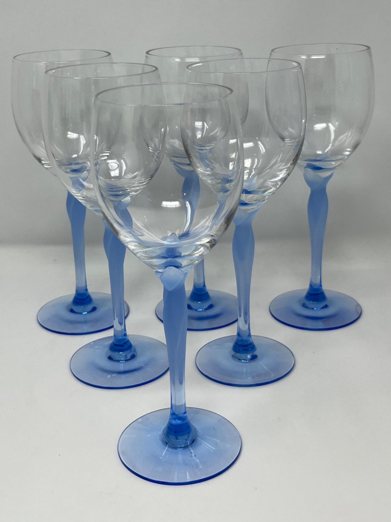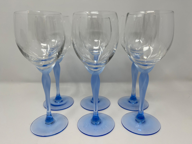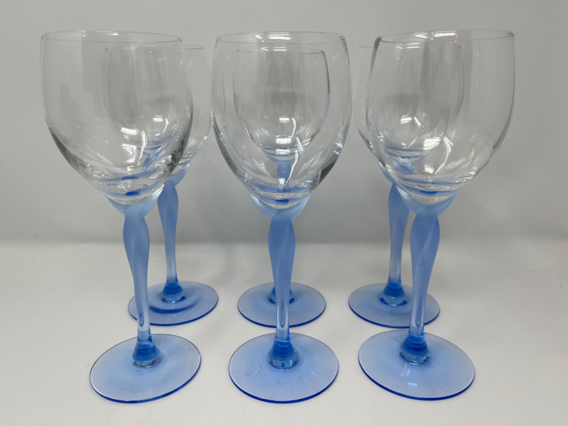 Lot # 108 - Lenox Spring Mist Wine Glasses – Set of 6 with Blue Frosted Stems