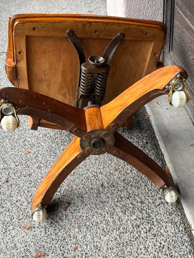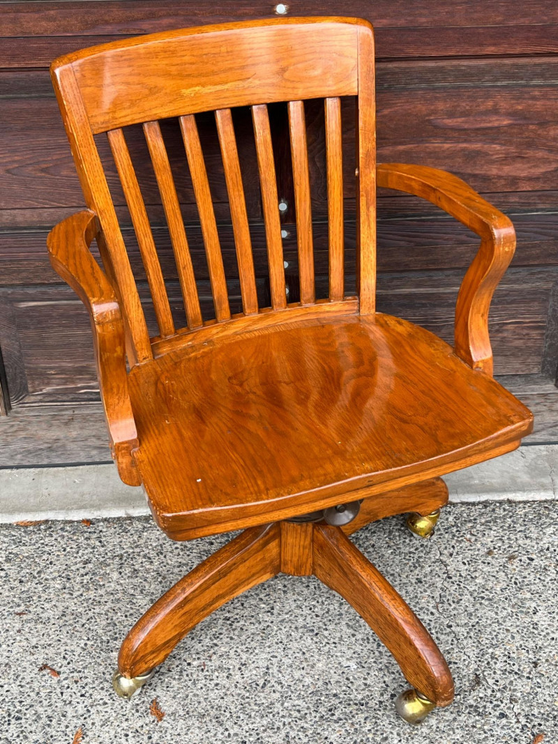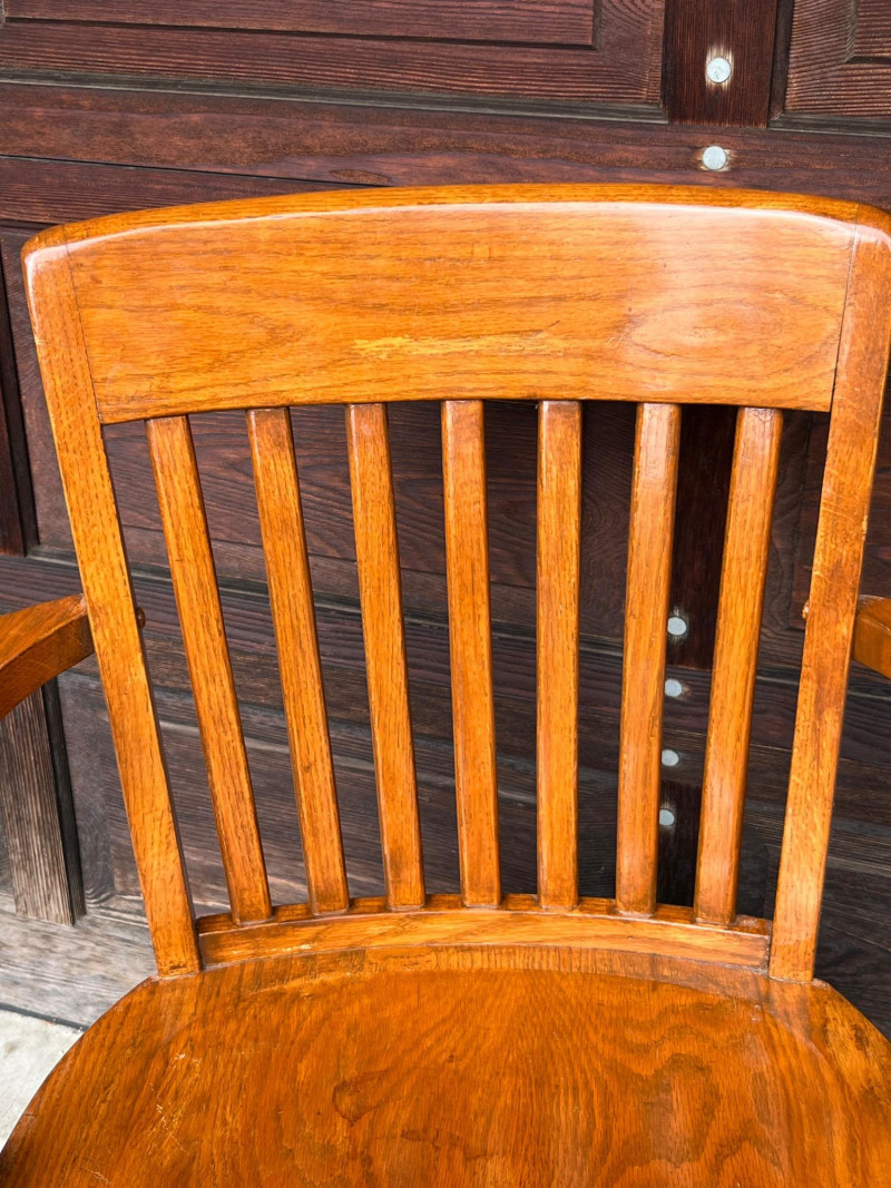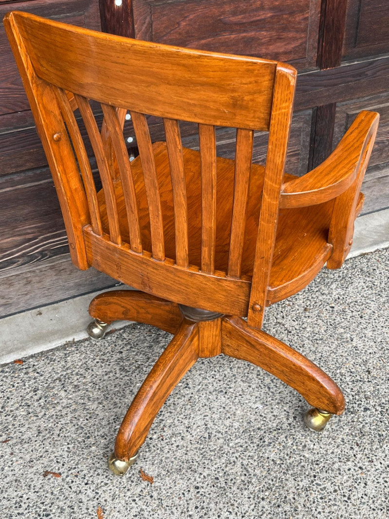 Lot # 117 - Vintage Tiger Oak Swivel & Tilt Banker's Chair