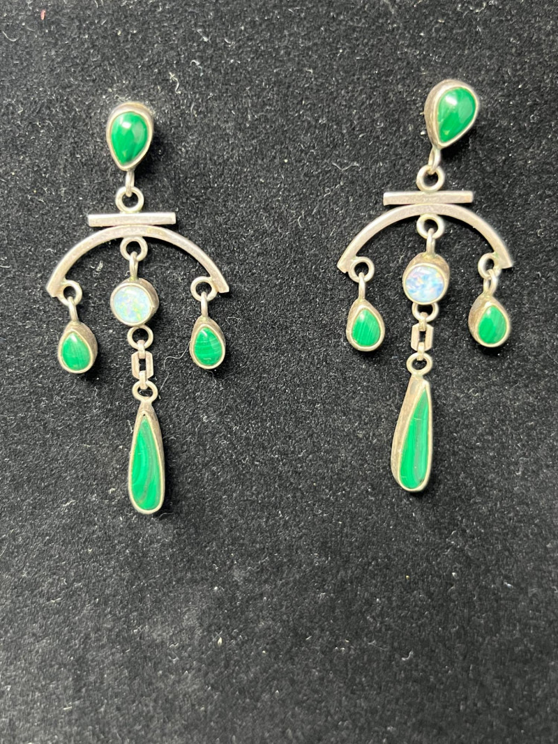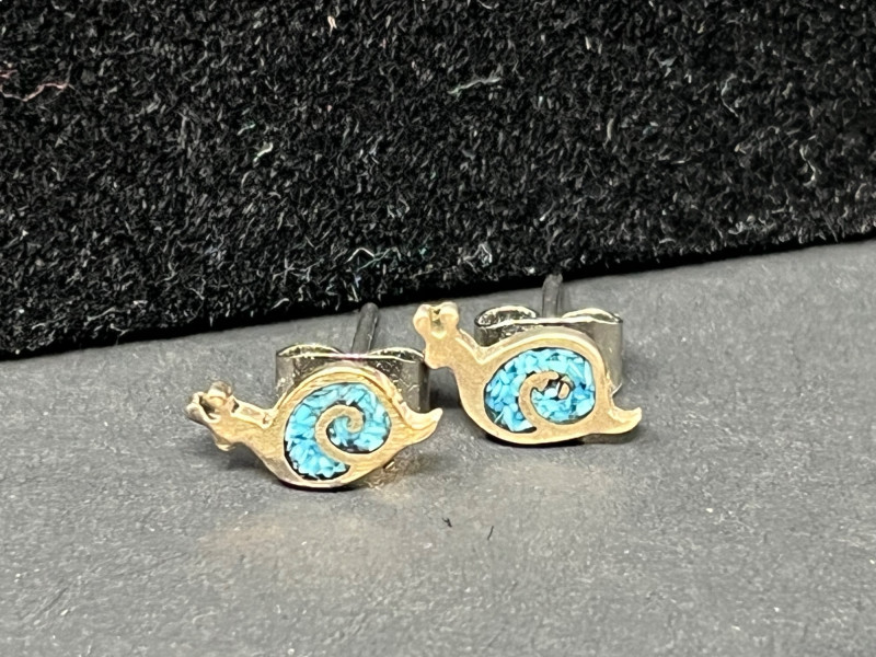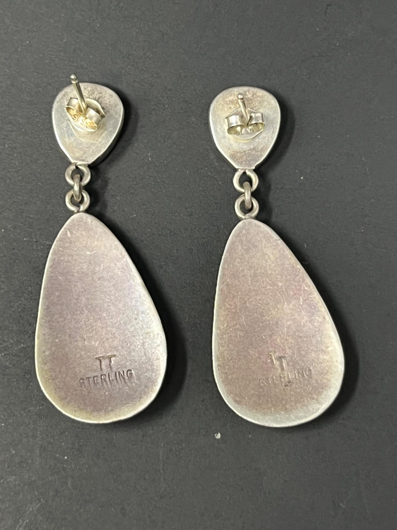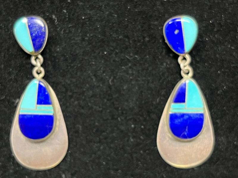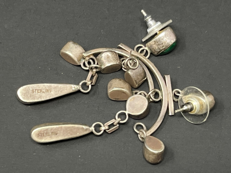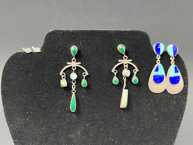 Lot # 128 - Three Pairs of Vintage Sterling Silver and Inlaid Stone Earring