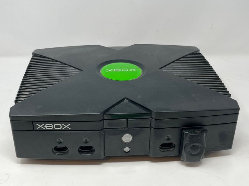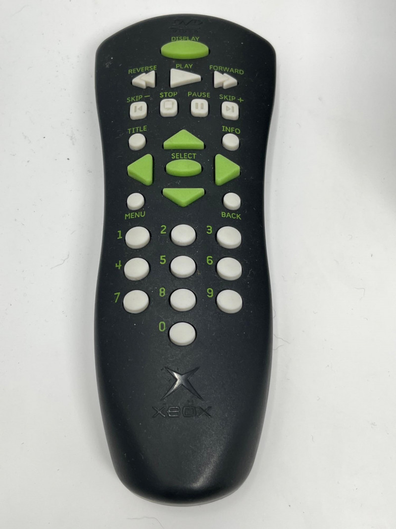 This auction is for a classic original Microsoft Xbox console, complete with one official DVD remote control and all necessary cables. The console is in working condition. The remote control is also working. This is a great opportunity for a collector or someone looking to relive the classic gaming experience of the early 2000s. The included remote was part of the original Xbox DVD Playback Kit, which allowed the console to be used as a media player.