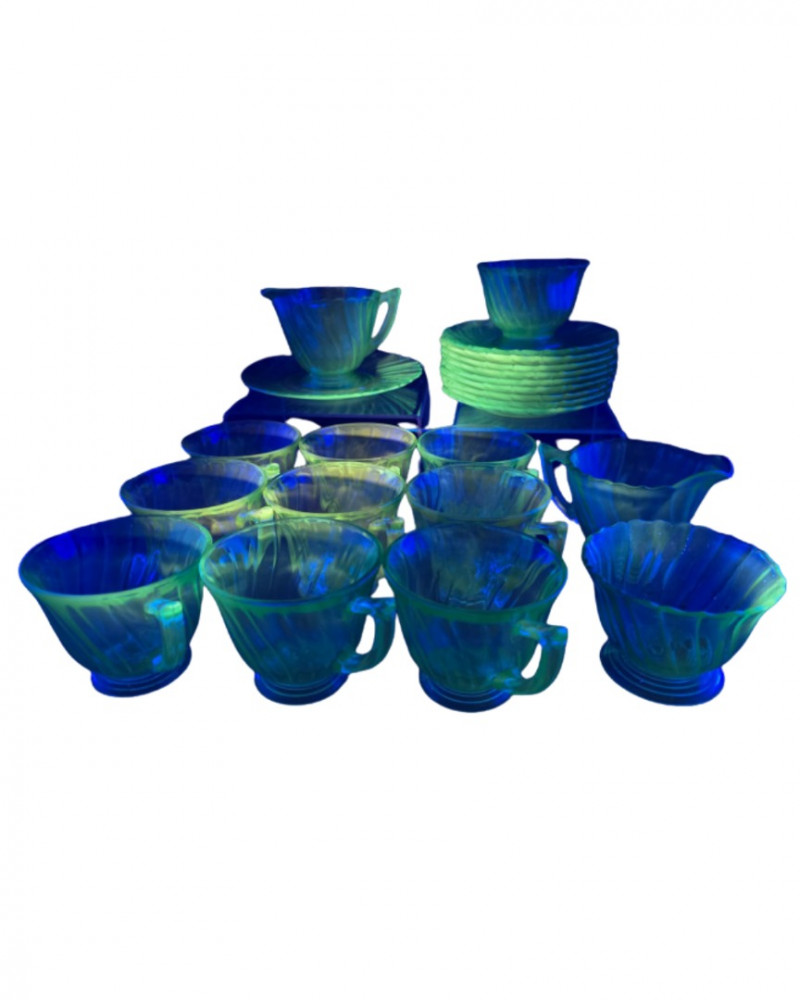 Lot # 135 - Vintage Jeannette Glass "Ultramarine Swirl" Depression Glass - Uranium