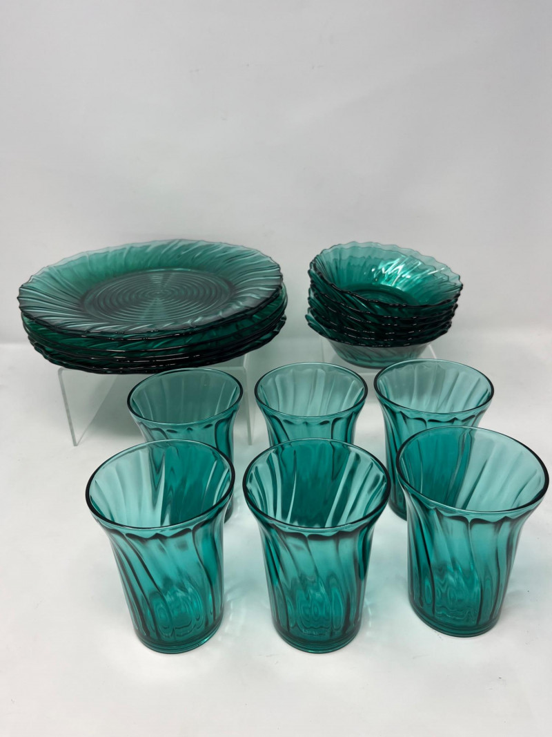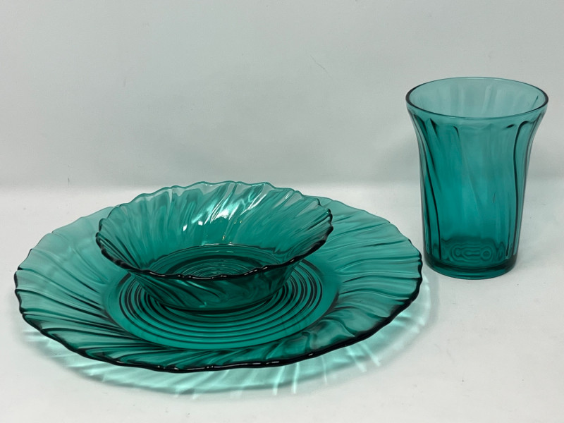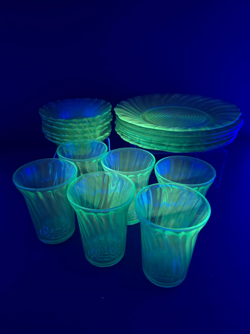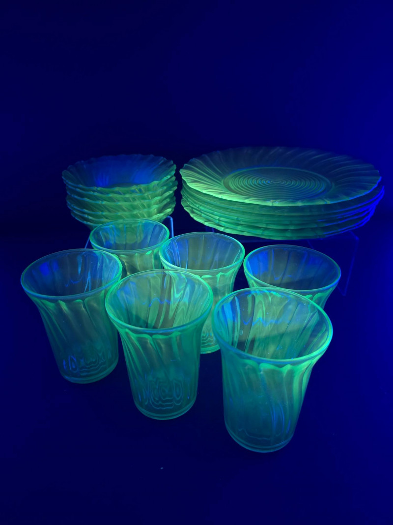 Lot # 136 - Jeannette Glass "Swirl Ultramarine" Uranium Depression Glass Set