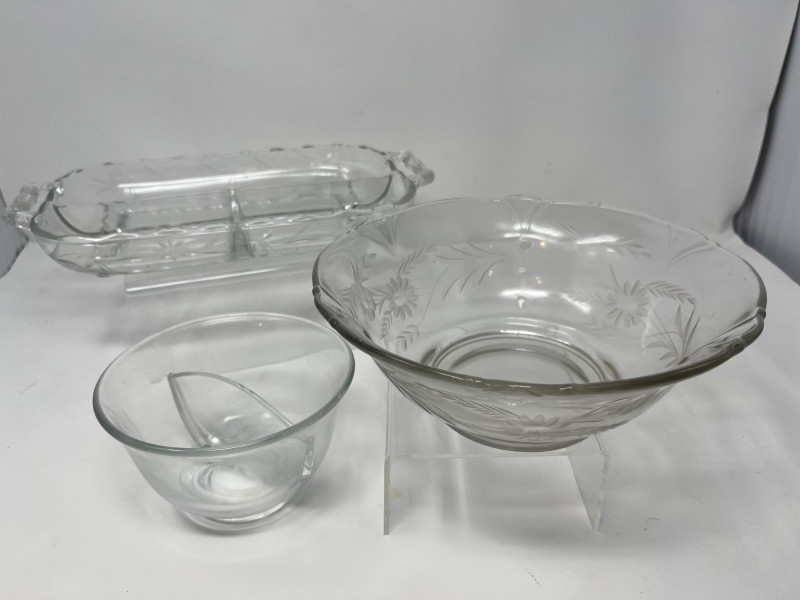 Lot # 140 - UV Reactive Glass Serving Trio – Floral Tray and Bowls