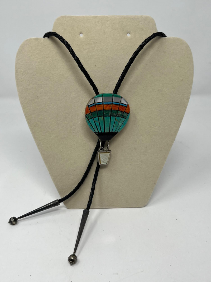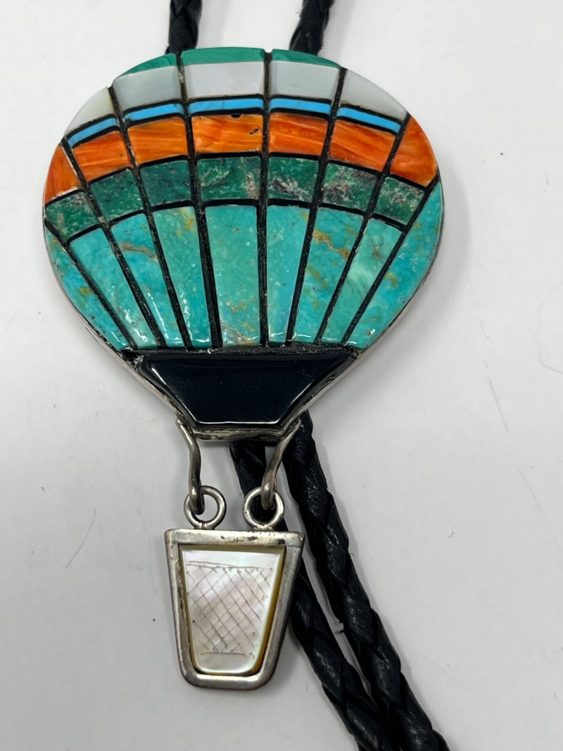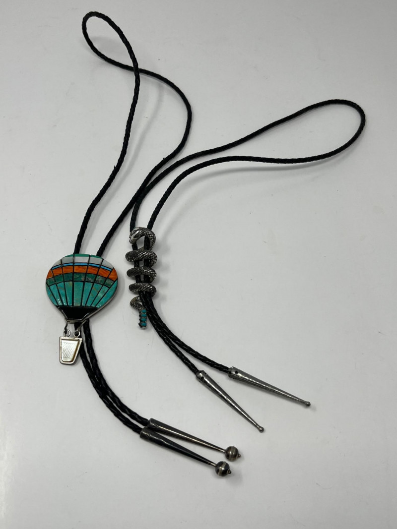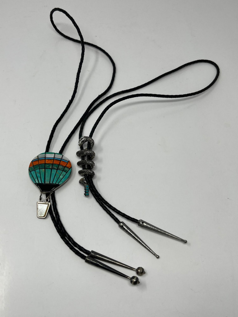 Lot # 154 - Sterling Silver Bolo Tie Duo – Hot Air Balloon Inlay & Coiled Snake