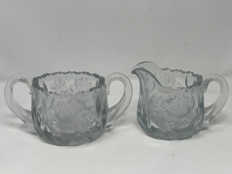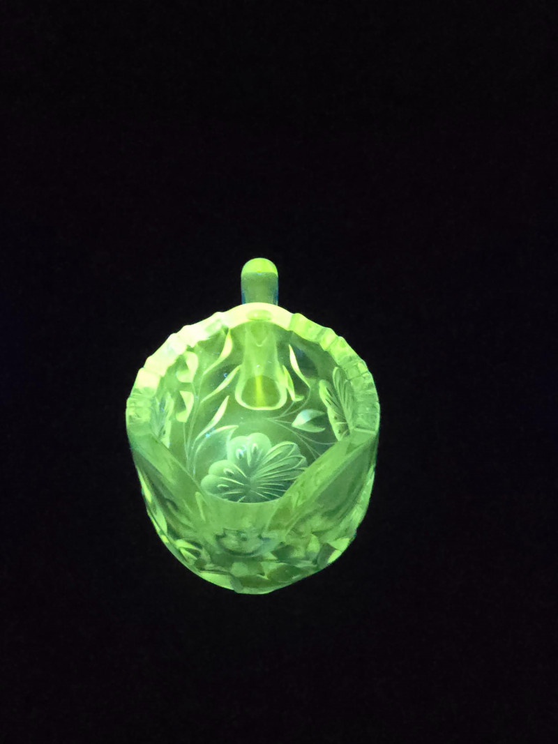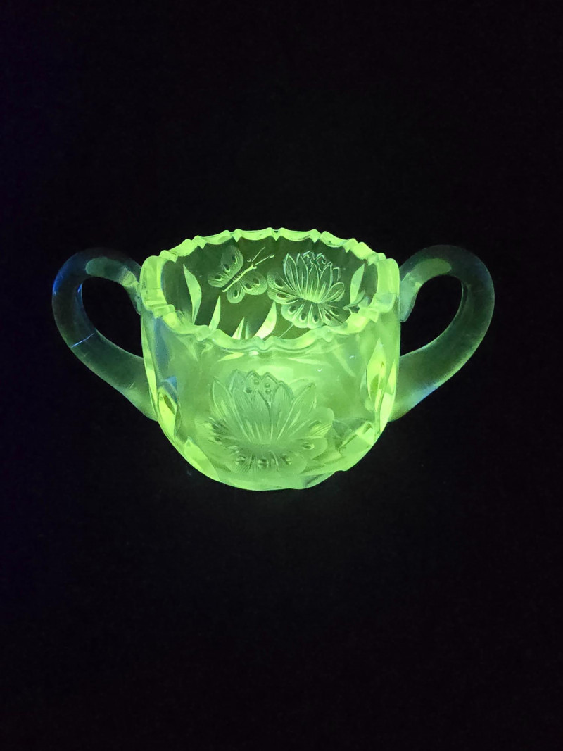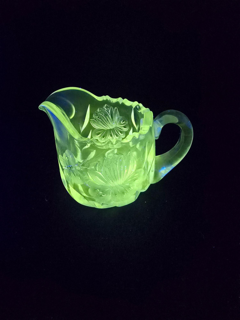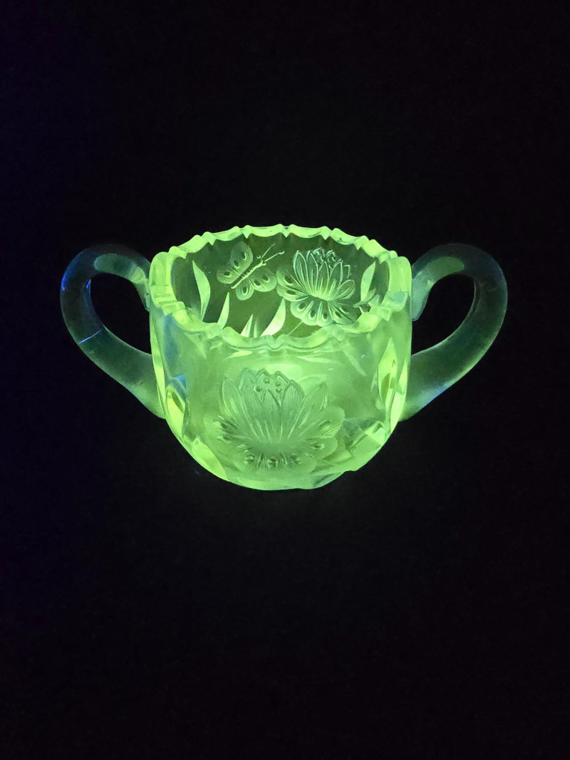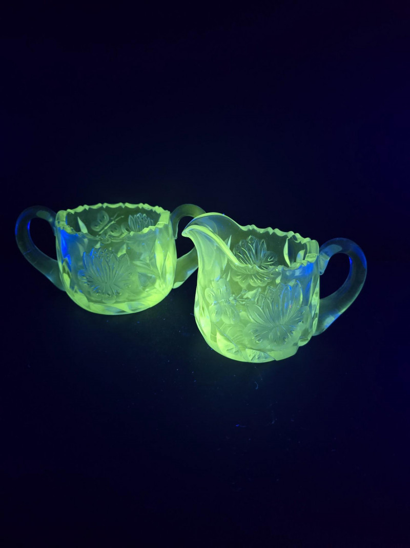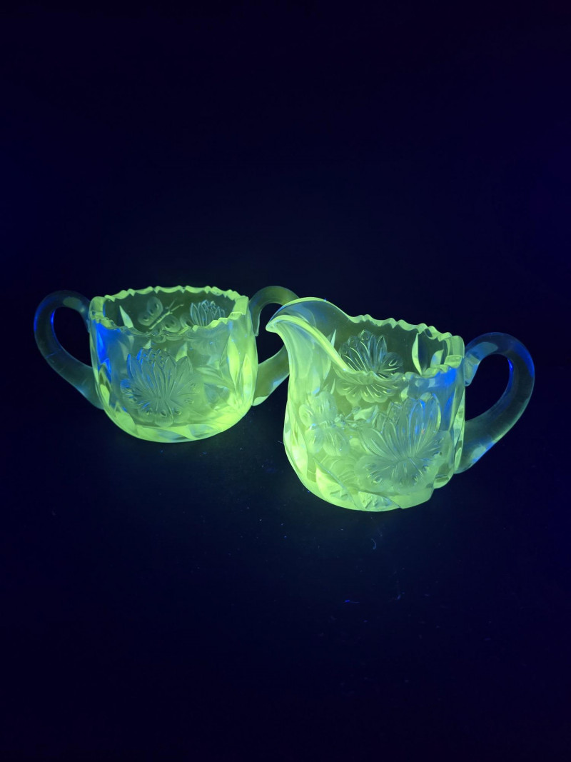 Lot # 160 - Vintage Uranium Glass Creamer and Sugar Bowl Set - UV Reactive Glow