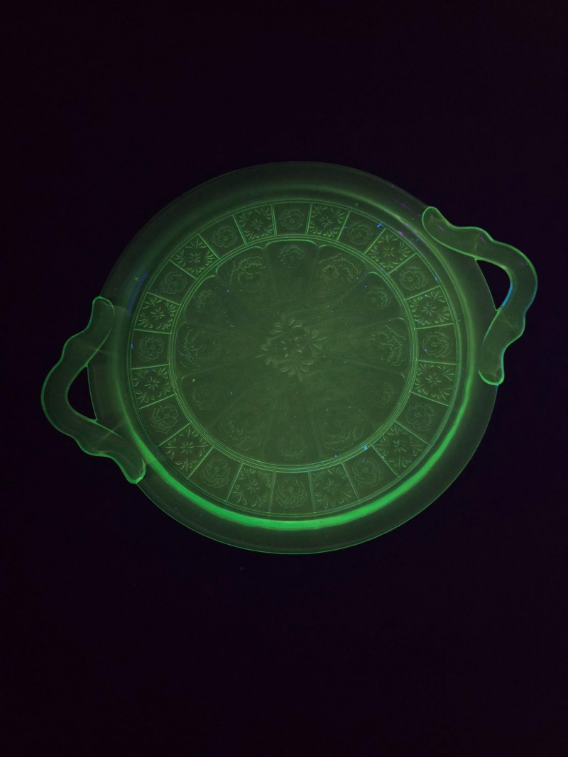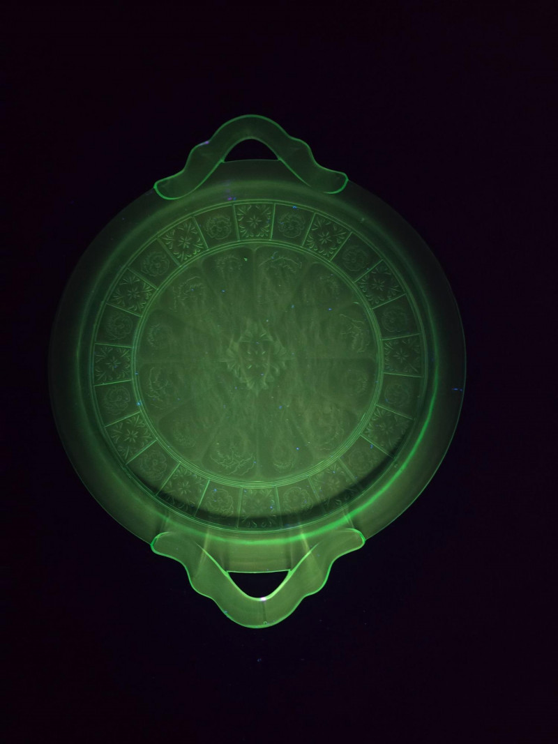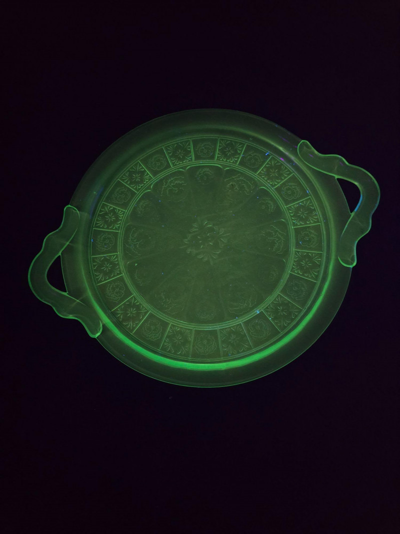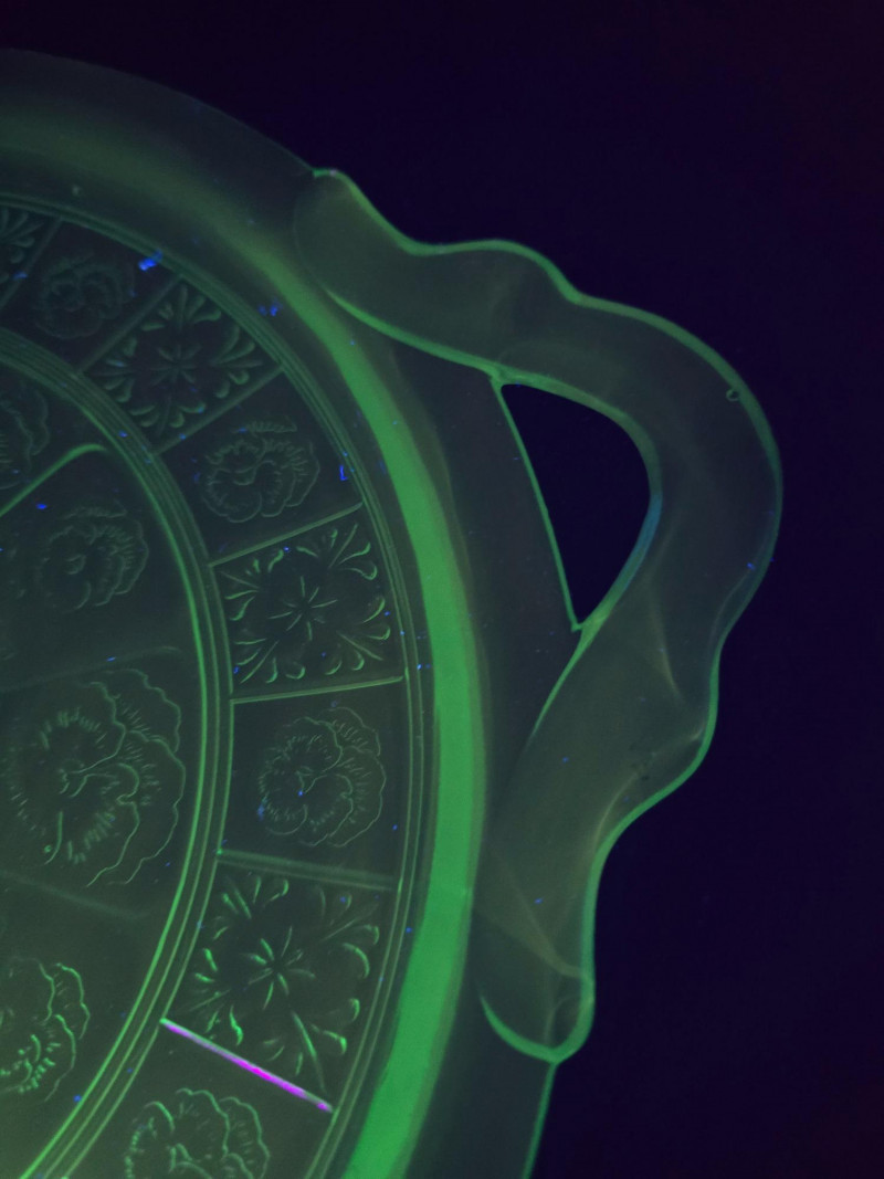 Lot # 167 - Vintage Jeannette Glass "Doric & Pansy" Ultramarine Handled Tray