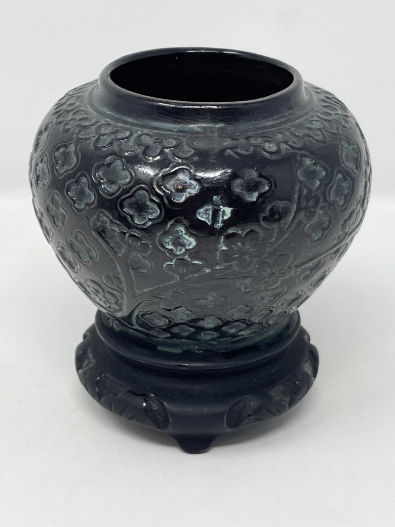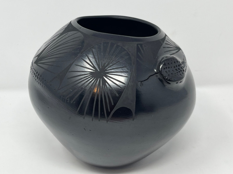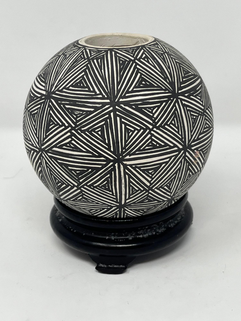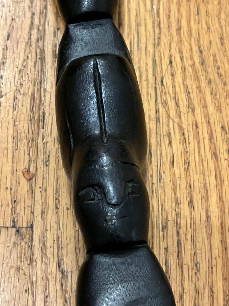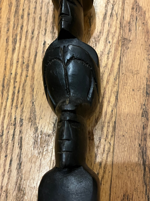 A striking and culturally rich 5-piece collection of handcrafted wood and clay decor, blending tribal artistry with ceremonial symbolism. This grouping includes two carved figures, three pottery vessels, and a ceremonial brush figure, each showcasing unique textures, forms, and regional influences. From the elongated wood sculpture to the geometric clay pot and glossy black vessel, this lot offers visual depth and storytelling potential—ideal for collectors, stylists, or global-inspired interiors. Figures- 8” and 14” tall each small pottery- 4” x 5” on stands black vase- 6”w 5”h fork and spoon- 6”w fork 10”w spoon x 39”hDescription