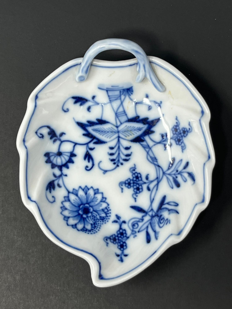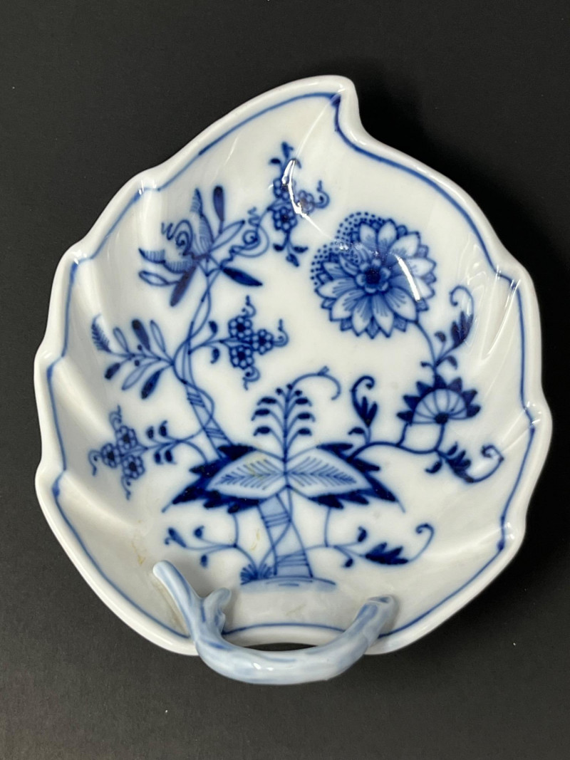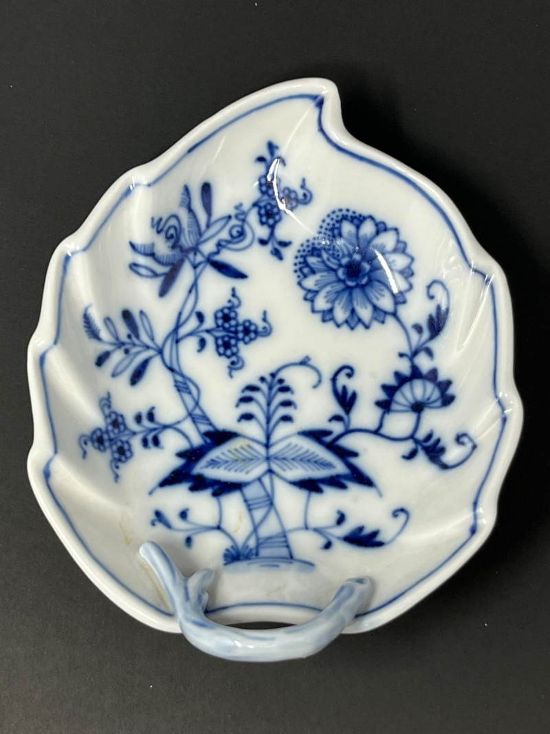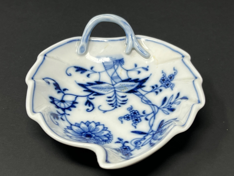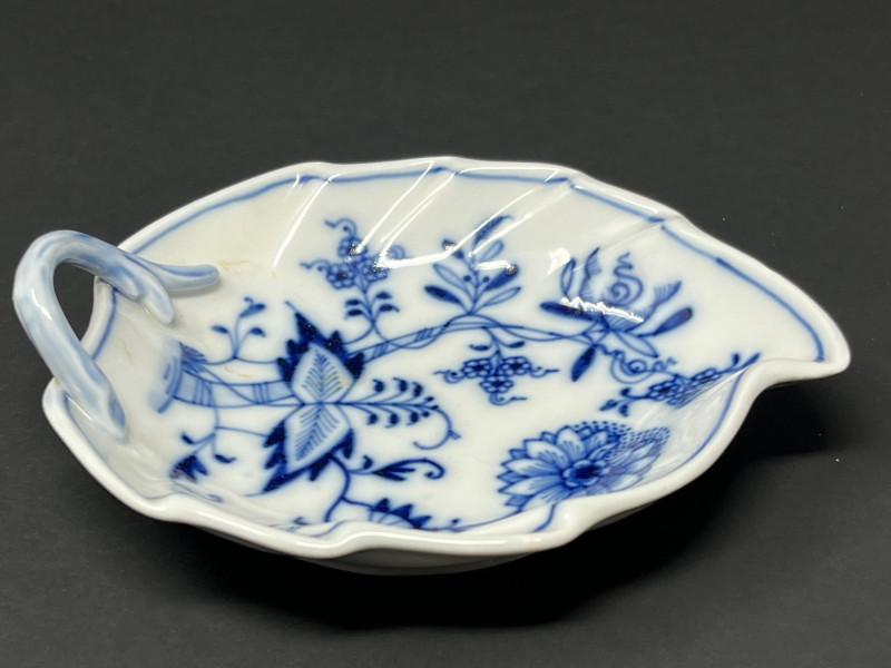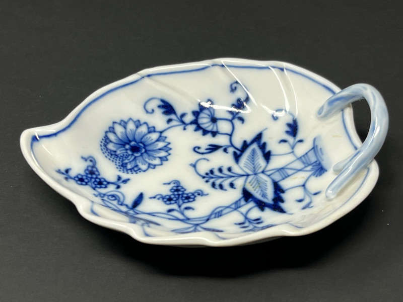 Lot # 176 - Meissen Blue Onion Leaf-Shaped Dish – Scalloped Rim & Curled Handle