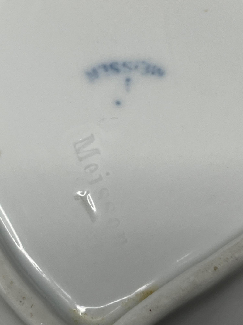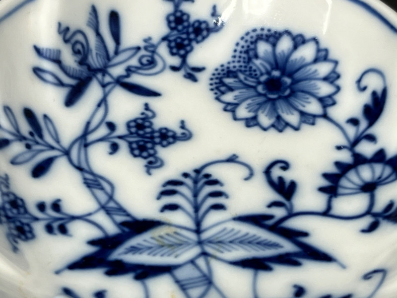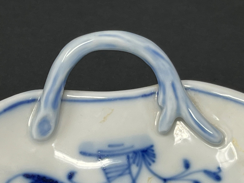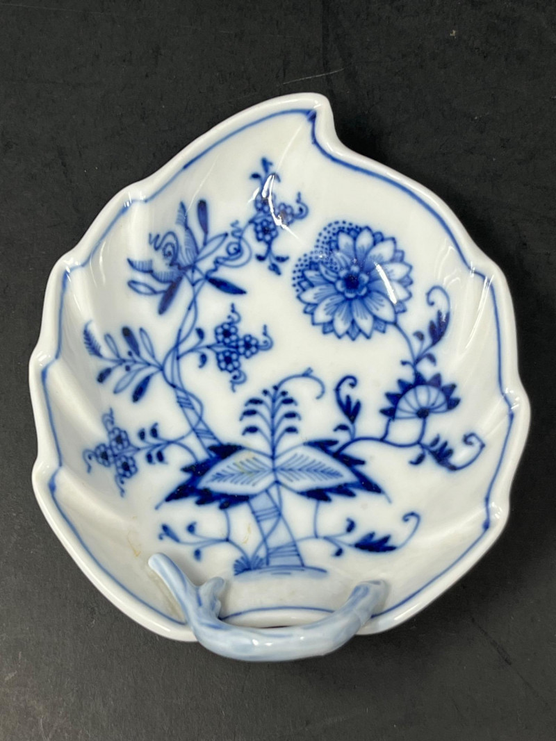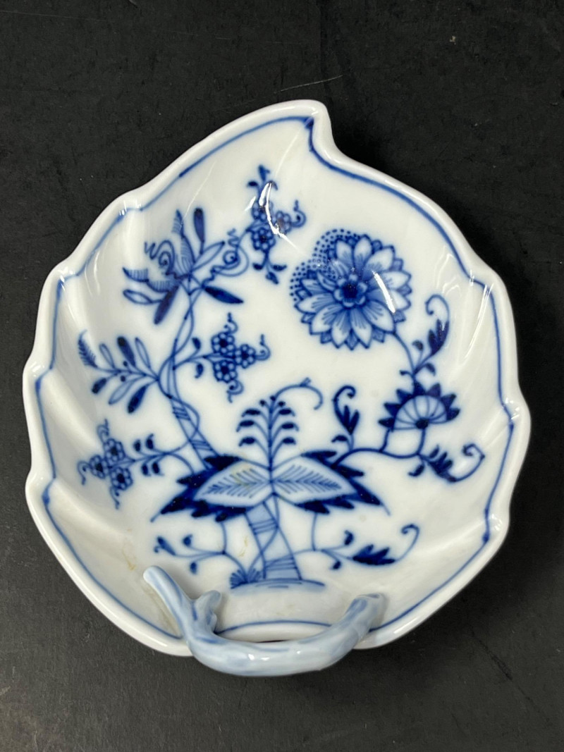 Lot # 176 - Meissen Blue Onion Leaf-Shaped Dish – Scalloped Rim & Curled Handle
