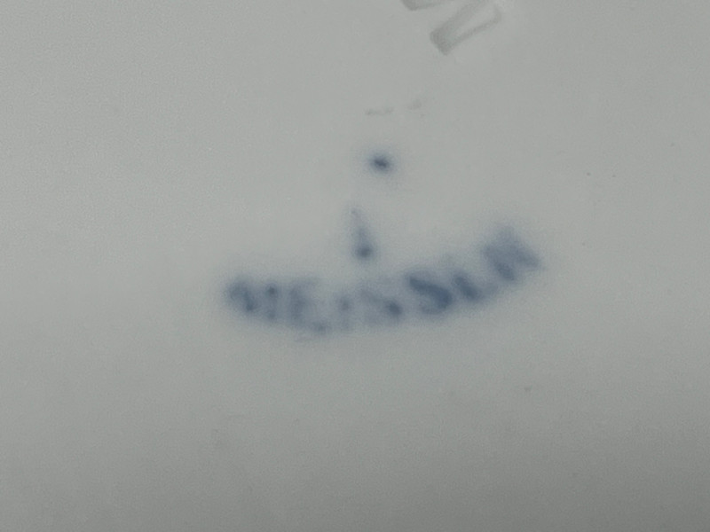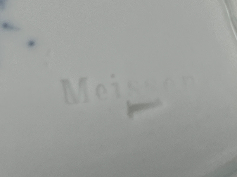 A sculptural Meissen porcelain dish in the iconic Blue Onion pattern, formed in a stylized leaf shape with a scalloped rim and curled handle. Hand-painted in cobalt blue on crisp white porcelain, the floral and botanical motifs reflect Meissen’s enduring legacy of 18th-century design. Compact and elegant, this piece is ideal for serving sweets, holding small items, or displaying in a curio cabinet. Fine German porcelain Hand-painted cobalt blue “Blue Onion” pattern Leaf-shaped form with scalloped edge Curled handle with matching blue accentsDescription