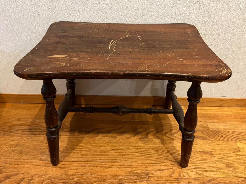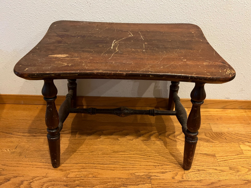 Lot # 179 - Rustic Wood-Large Side Table & Cushman Colonial Creation Cricket Stool