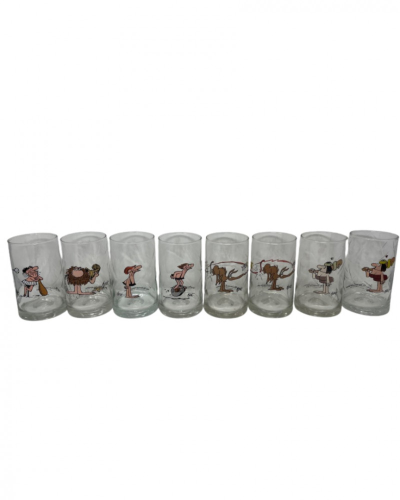 A vibrant and nostalgia-packed 20-piece collection of vintage promotional drinking glasses featuring beloved characters from fast food campaigns and pop culture icons of the 1970s–1980s. This lot includes Flintstones favorites like Fred and Dino, Pac-Man arcade graphics, Looney Tunes classics, and futuristic flair from The Jetsons, plus rare tie-ins like Indiana Jones. Each glass showcases colorful wraparound artwork and classic branding, making this set ideal for collectors, retro decorators, or resale. The Flintstones – Multiple glasses featuring Fred Flintstone and Dino Pac-Man – Arcade-style graphics with ghosts and maze elements Looney Tunes – Characters like Yosemite Sam The Jetsons – Futuristic family scene Indiana Jones – Adventure-themed glass Additional character glasses from 1970s–1980s fast food promotionsescription