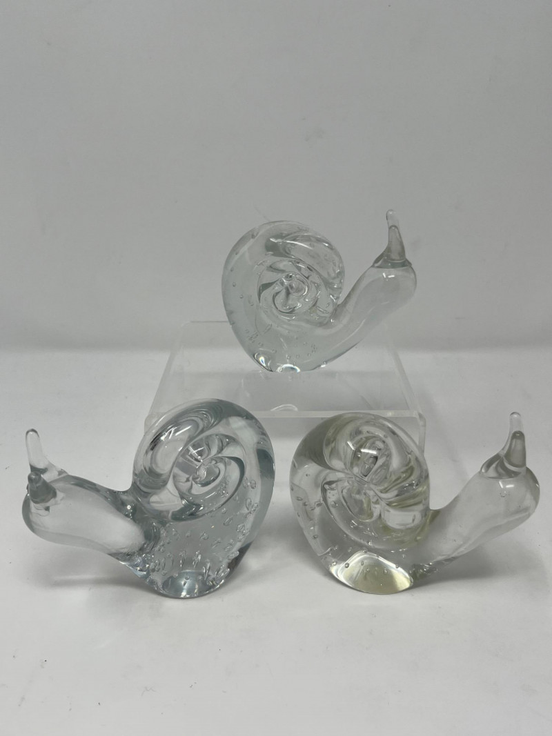 Lot # 185 - Three Manganese Glass Snail Figurines