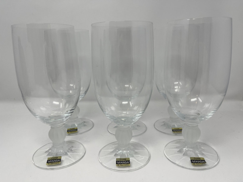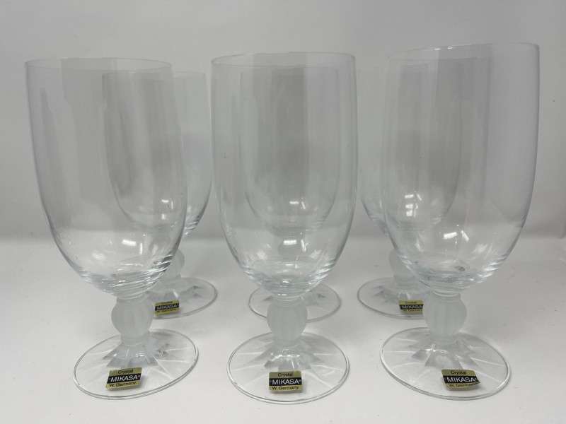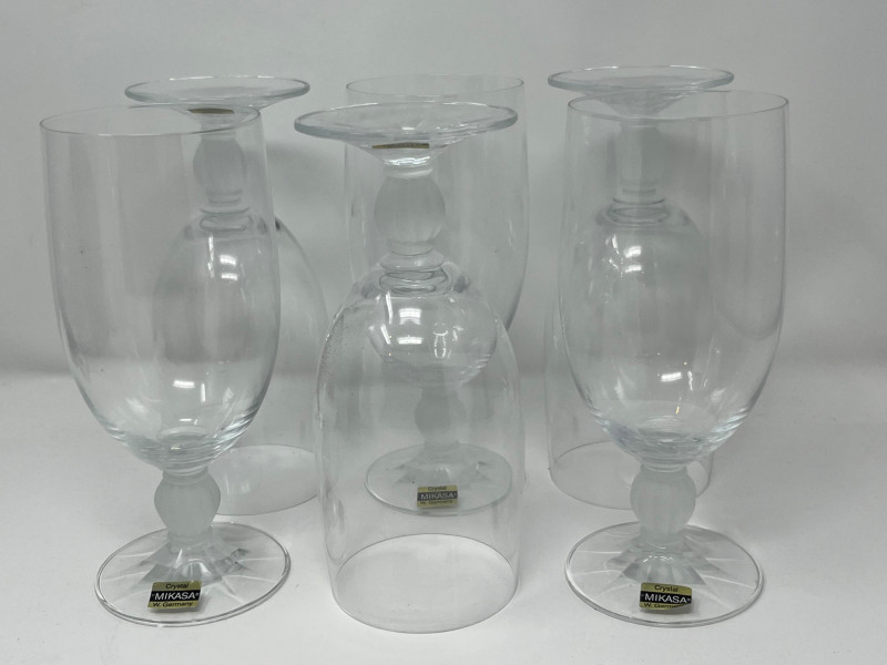 Lot # 188 - Mikasa German Crystal Goblets – Set of 6 with Frosted Stems, 8" Tall