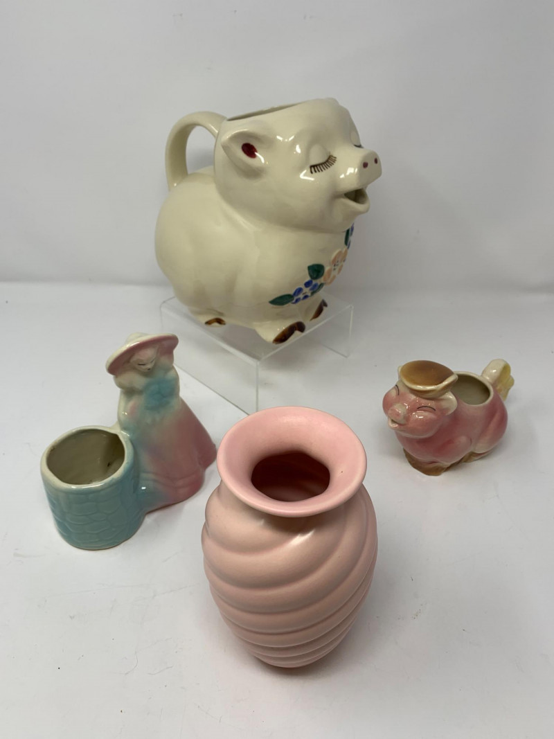 Lot # 189 - Shawnee Pottery "Smiley" Pig Pitcher, and other Ceramics