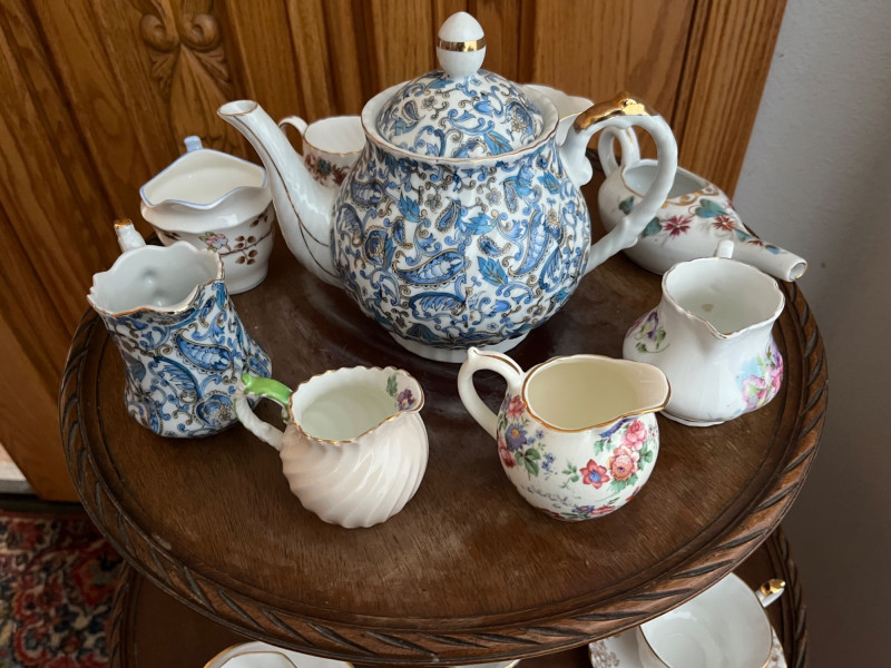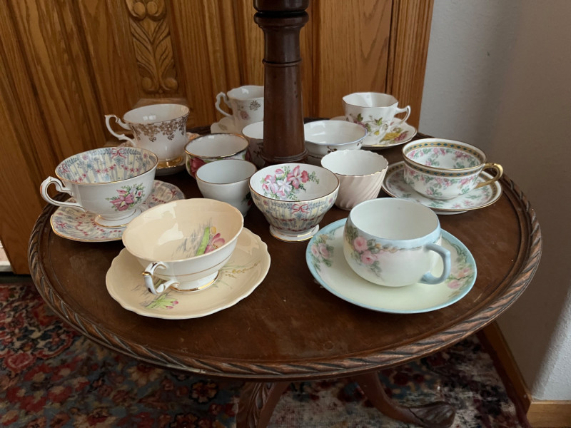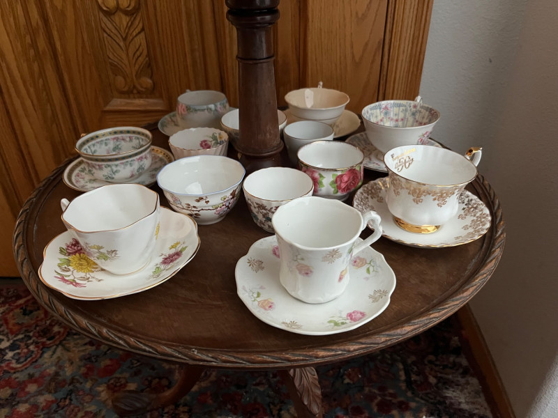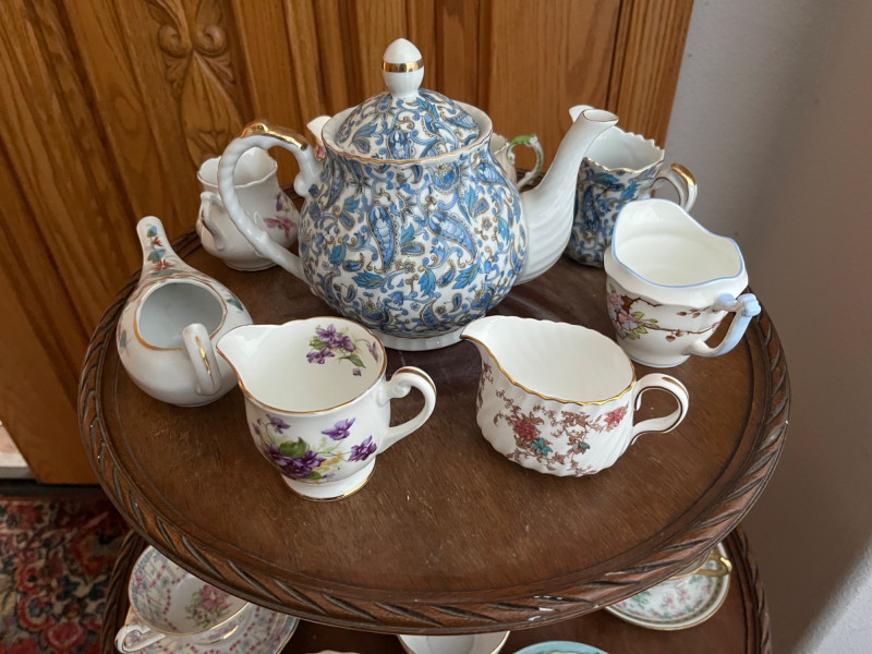 Lot # 195 - Mad Hatters Tea Party- Vintage Tea Table with Mismatched China