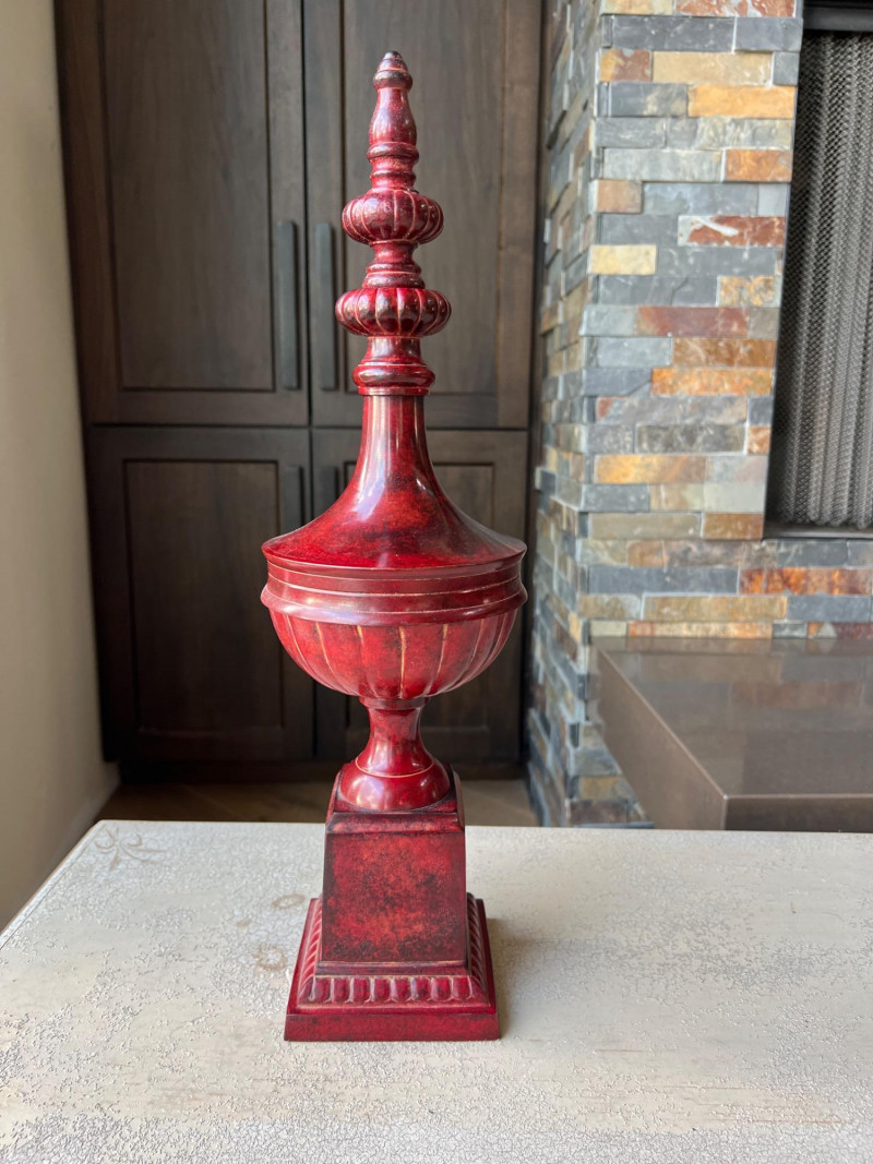 Lot # 11 - Antiqued Red Decorative Obelisk - Made in India