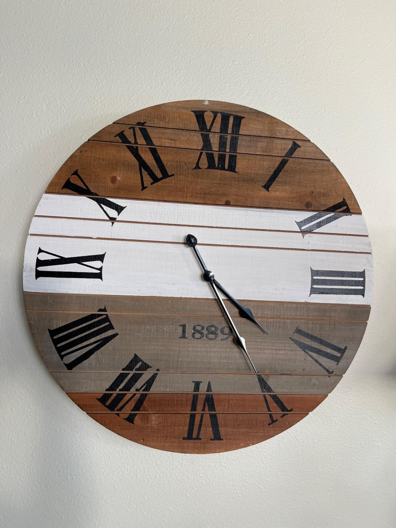 A bold, rustic accent with vintage charm. This 21" farmhouse-style wall clock is crafted to resemble an oversized wooden spool, blending industrial texture with country warmth. Ideal for shop offices, home builds, or staging projects that call for character and scale. Whether you're outfitting a breakroom, adding flair to a remodel, or curating a Northwest-inspired space, this piece delivers visual impact and timeless appeal.