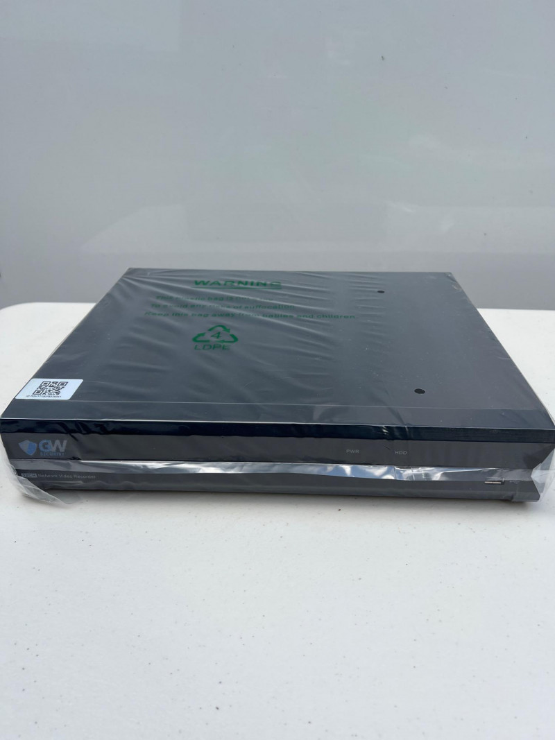 GW Security HD network video recorder (NVR), Model GW5532NP-V5,new in box. Designed for Power-over-Ethernet (PoE) surveillance systems, this unit supports multiple high-resolution IP cameras and offers remote viewing, motion detection, and scheduled recording. Ideal for residential or commercial setups requiring centralized video management. Compatible with GW Security bullet and dome cameras. Retails at $1,000.