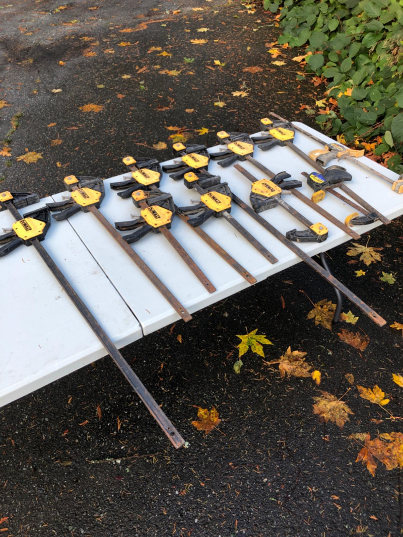 Lot 104 includes eleven clamps in assorted sizes, featuring trusted brands like DeWalt and Quick-Grip. Designed for woodworking, cabinetry, and general shop use, this set includes bar clamps and trigger clamps ideal for holding, gluing, and stabilizing materials. A versatile bundle for contractors, makers, or restoration crews building out their toolkits. Sizes: 44" - 2 Clamps 32" - 5 Clamps 21" - 3 Clamps 14" - 1 Clamp