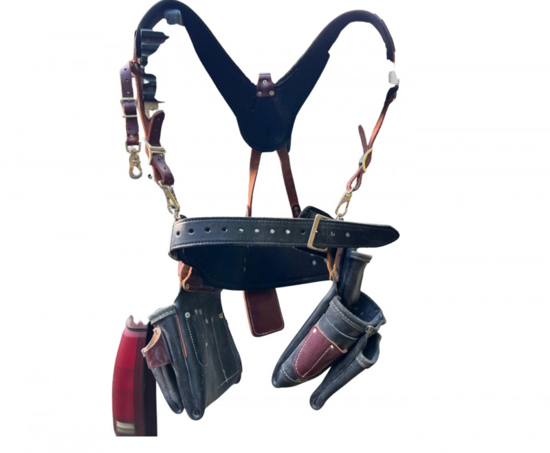Occidental Leather contractor harness belt, designed for professional-grade tool carrying. Known for its ergonomic design, durable leather construction, and balanced weight distribution. Ideal for framing, carpentry, or general contracting.