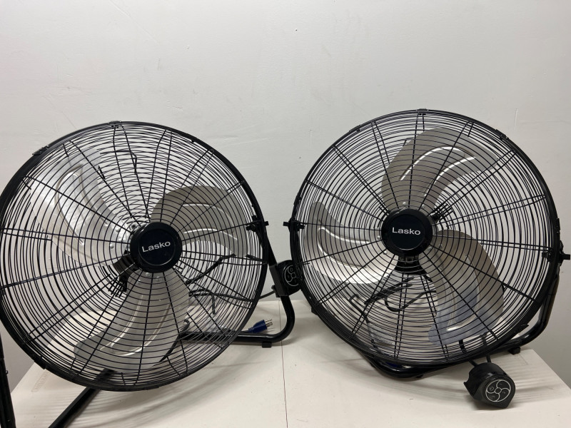 Two Lasko-brand fans, ideal for shop ventilation, garage cooling, or home use. Known for their reliability and airflow performance, these fans are a practical addition to any workspace or household. Brand: Lasko with Remote Quantity: 2 fans Use: Ventilation, cooling, shop or home, quiet Condition: Usable