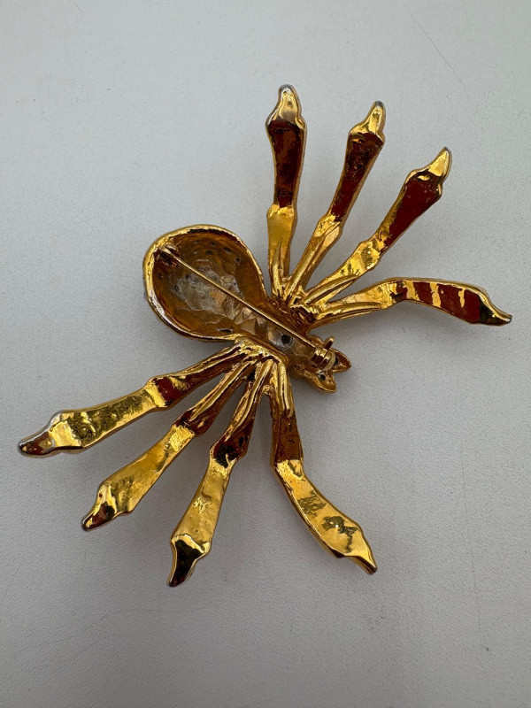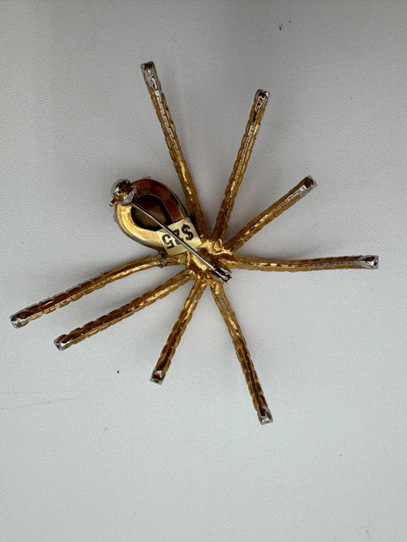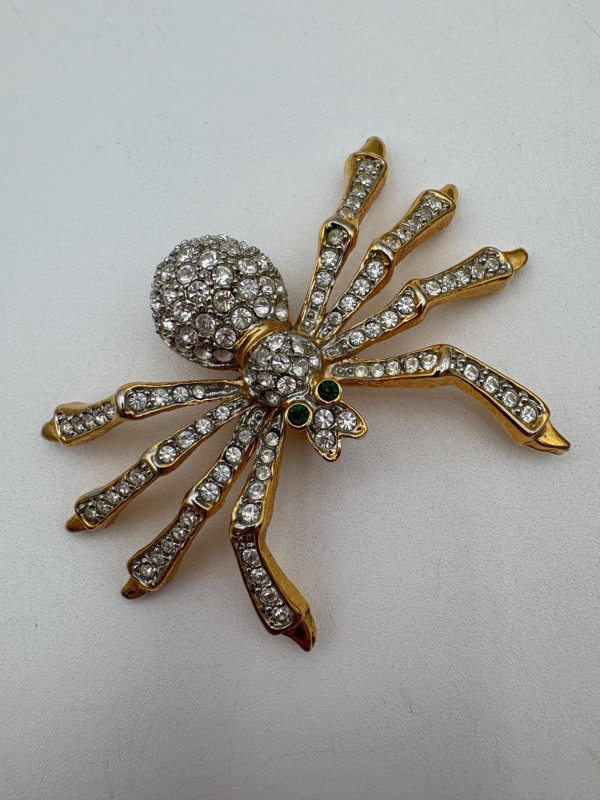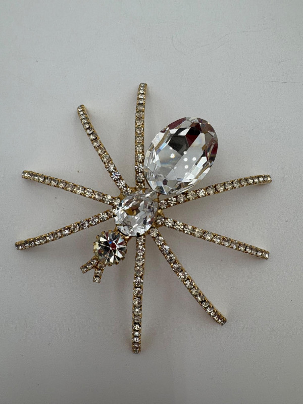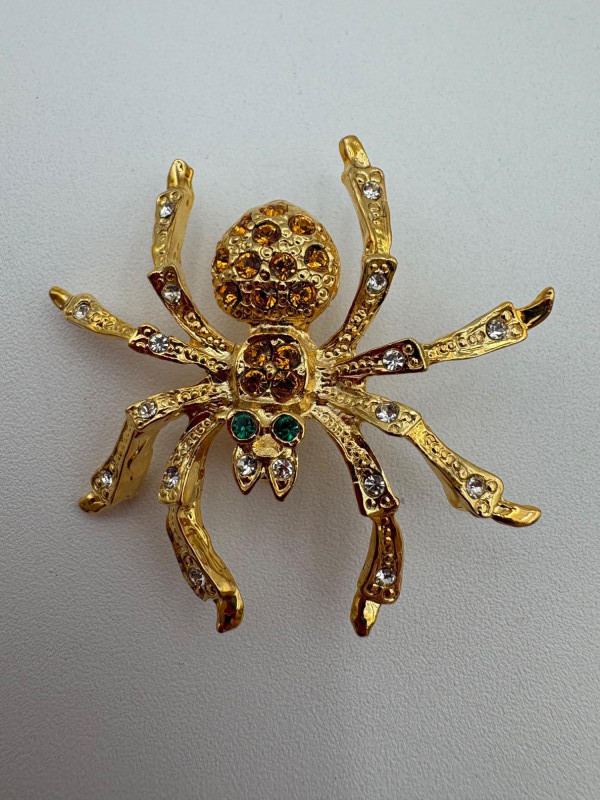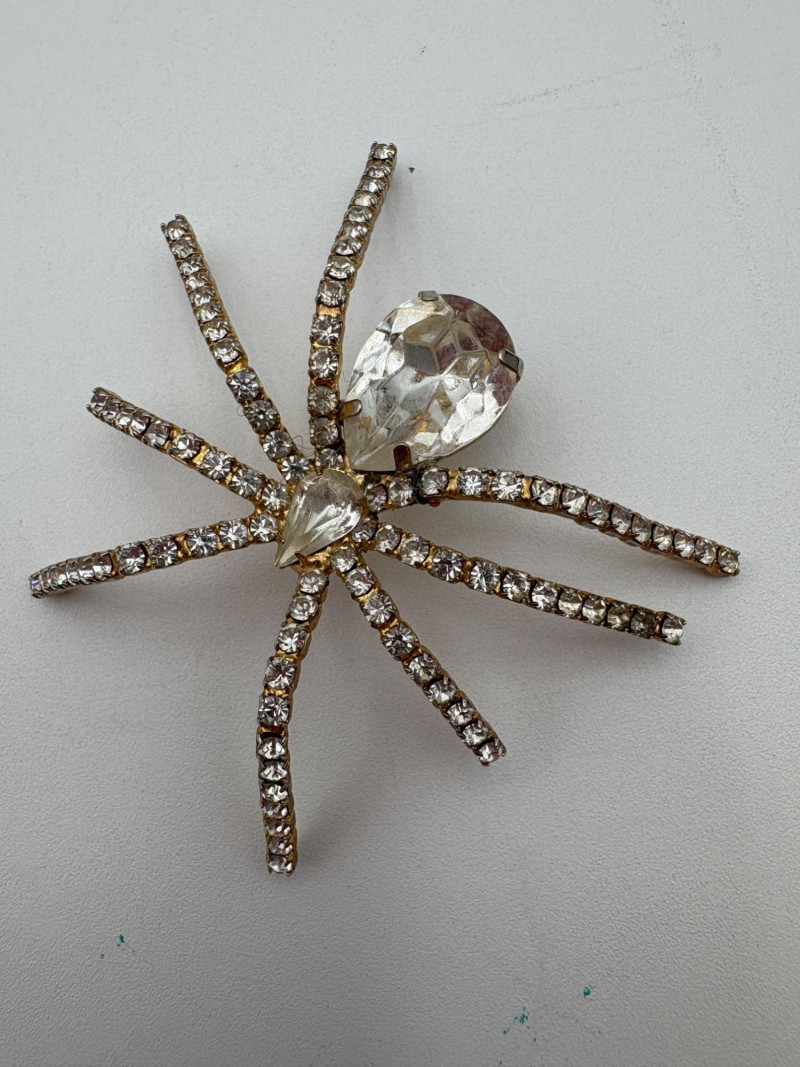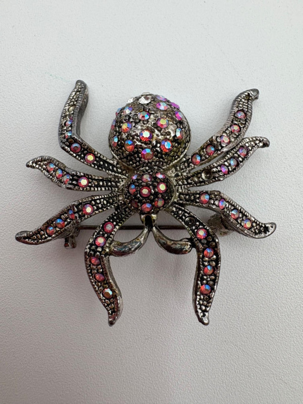 One dozen sparkly spiders to wear year-round (these aren't the scary Halloween kind, they are the nice "Charlotte's Web kind!). Most are vintage, but a few are newer. Please see photos - the largest ones are quite big; almost 4" L x 4" W!