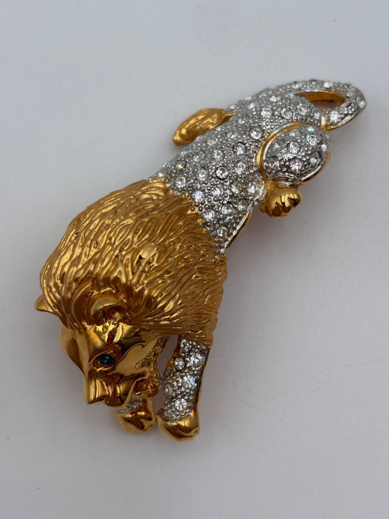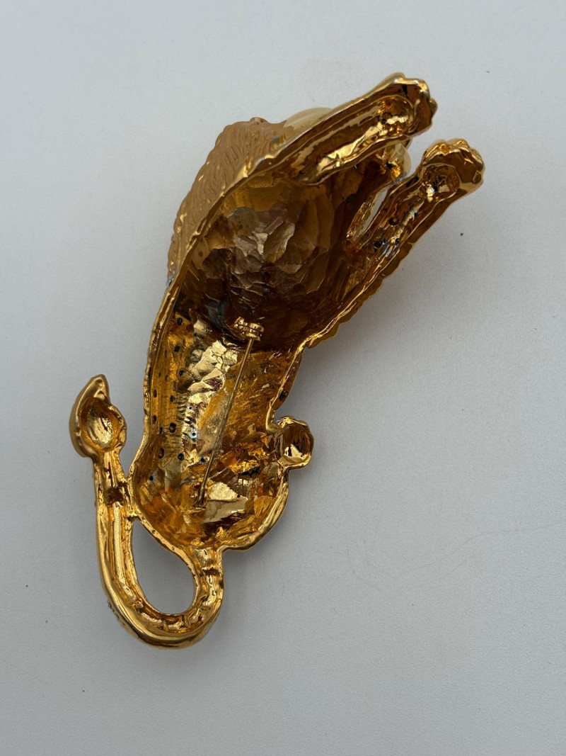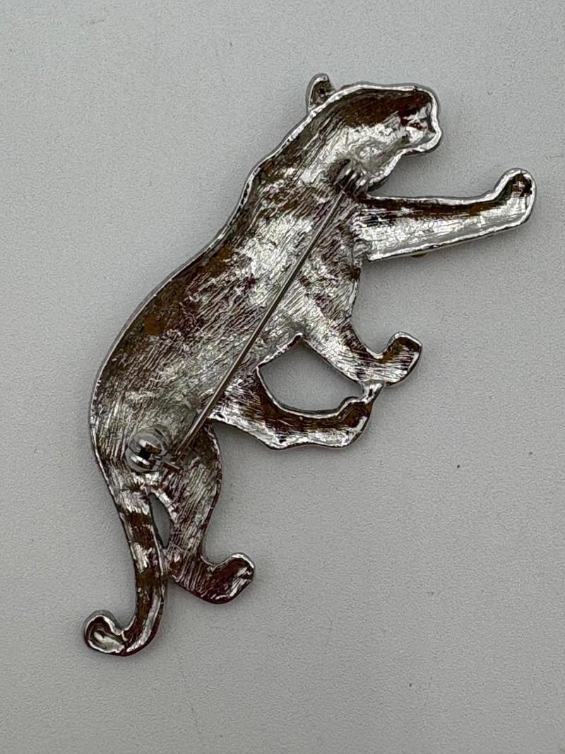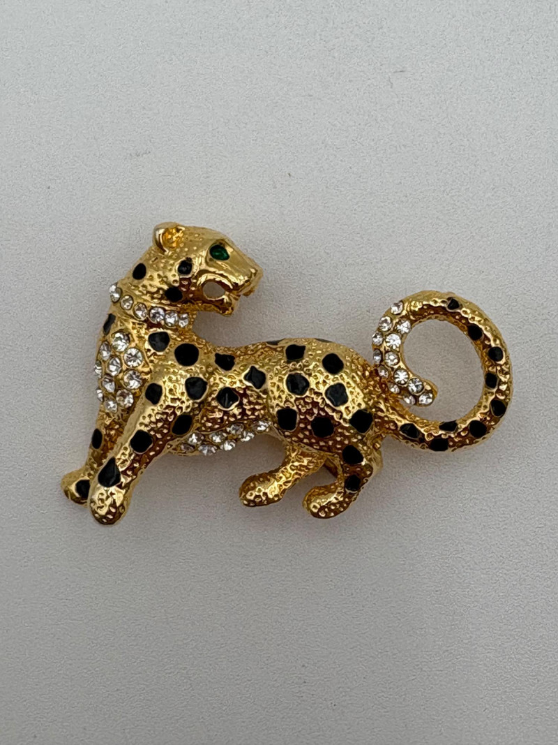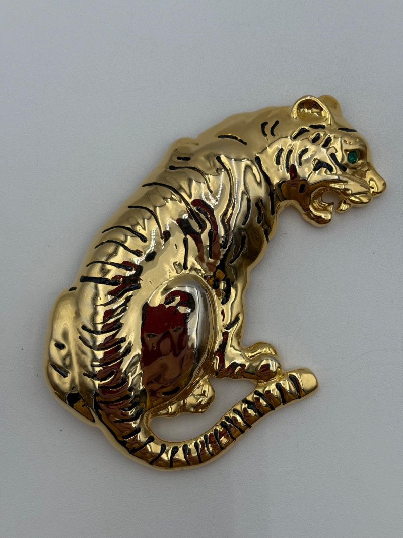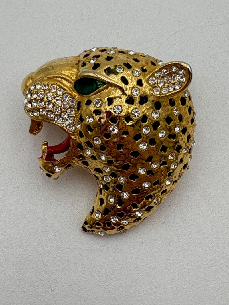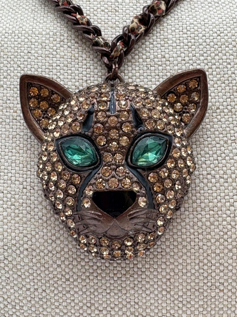 The focus of this lot is on big cats - lions, tigers, and their cousins. Lot includes 3 necklaces and 6 pins of varying age/maker. Most are high quality metal pieces. Please see photos for details - largest piece (gold tiger) measures 4" H while smallest piece (spotted leopard looking backward) measures 2" W.