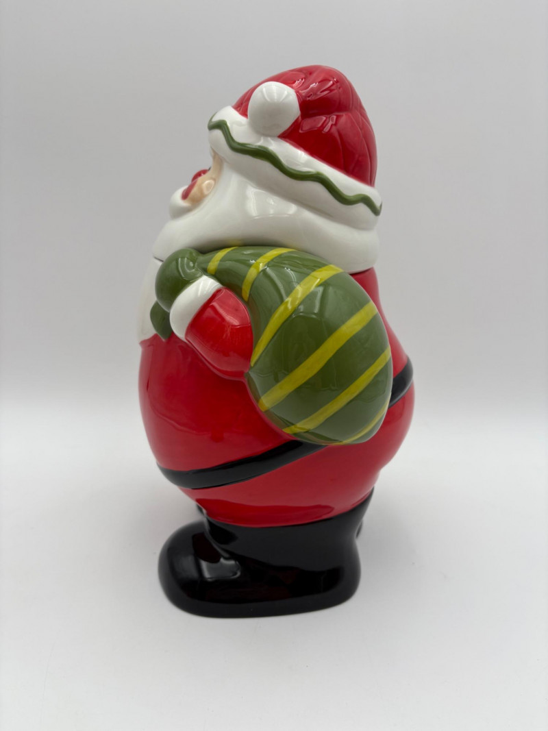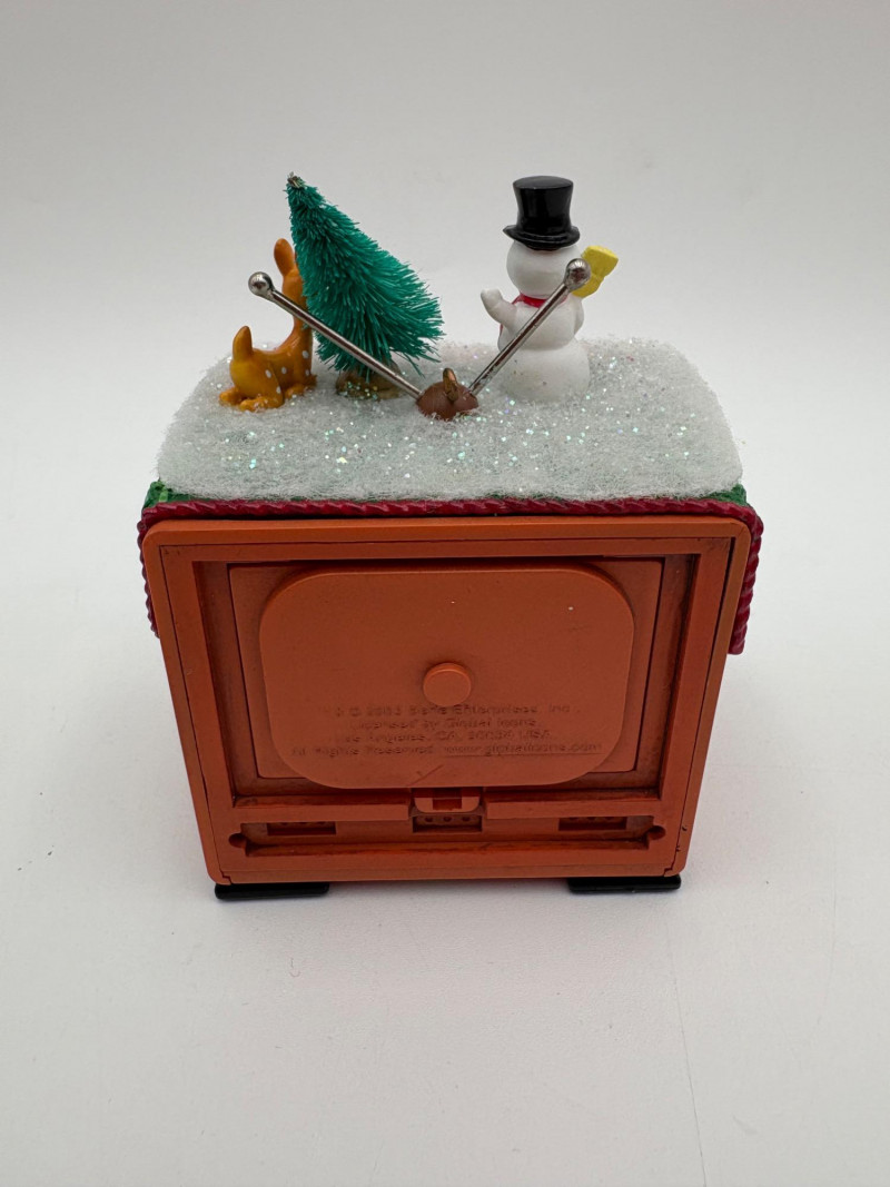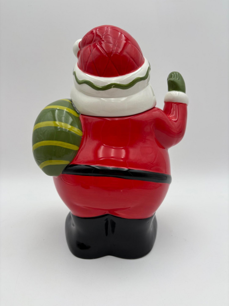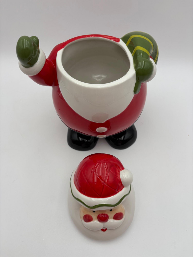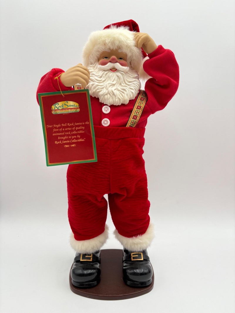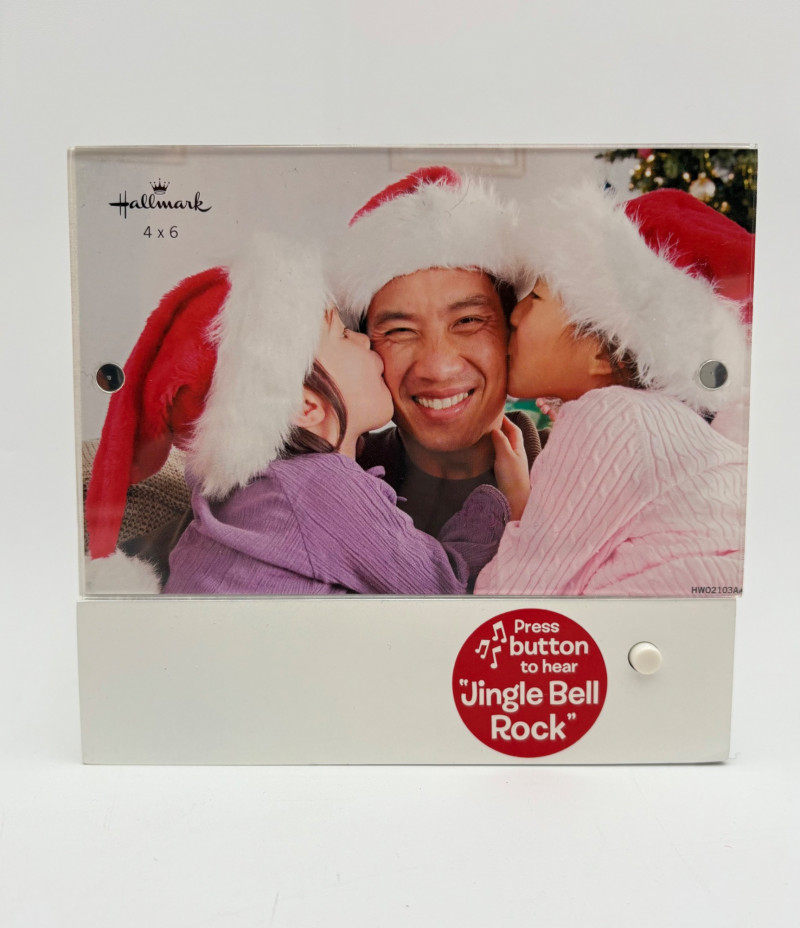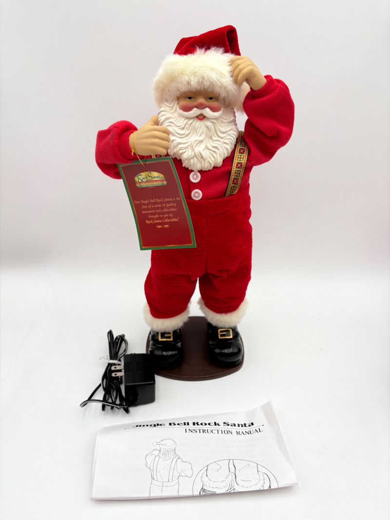 Lot of "old school" decorations that all either light up, make noise, or both! - Rockin' Santa from Christmas Fantasy Ltd. wiggles his hips to the beat of Jingle Bell Rock. Used very little if at all. Adapter and on-off switch at the rear of the feet. Measures 14" H. From 1998. - Vintage windup spinning Santa head. Turn the base to wind up and he plays "Jingle Bells" as he slowly spins. Measures approx. 8 " H. Some slight discoloration at seams from age - See photos. From 1973. - Pair of Hallmark photo music boxes - remove the Plexi square, put your photo behind it & replace it (magnetic). Touch the player button and you can hear "It's the most Wonderful Time of the Year" or "Jingle Bell Rock". Great grandparent gift! Appear to be new and both tested fine - each uses 2 AAA batteries. They measure 6" square and hold 4" x 6" photos. - Hallmark light-up "globe" in the shape of a home with swirling snow and changing colors. Works fine with 3 AAA batteries but is a tad noisy in a silent room (probably wouldn't notice, but our booth was super quiet today!). Tree is equally visible from front or back and pump swirls snow while changing colors. From 2010. - Milton Berle TV ornament from Carlton Cards lights up and plays dialogue from the show. Measures approx. 4' H and runs on 3 AAA batteries. From 2003. - 3 pushbutton ornaments featuring Charlie Brown, Garfield, and Mario. All play a little ditty when the button on the back is pushed. They measure about 4" H. From the late 1990s. - Santa Claus cookie jar from Target Home - head lifts off. Measures 11" H. Appears new. OK - this item doesn't light up or make noise, but if you eat cookies in it you may light up and say "Yum."
