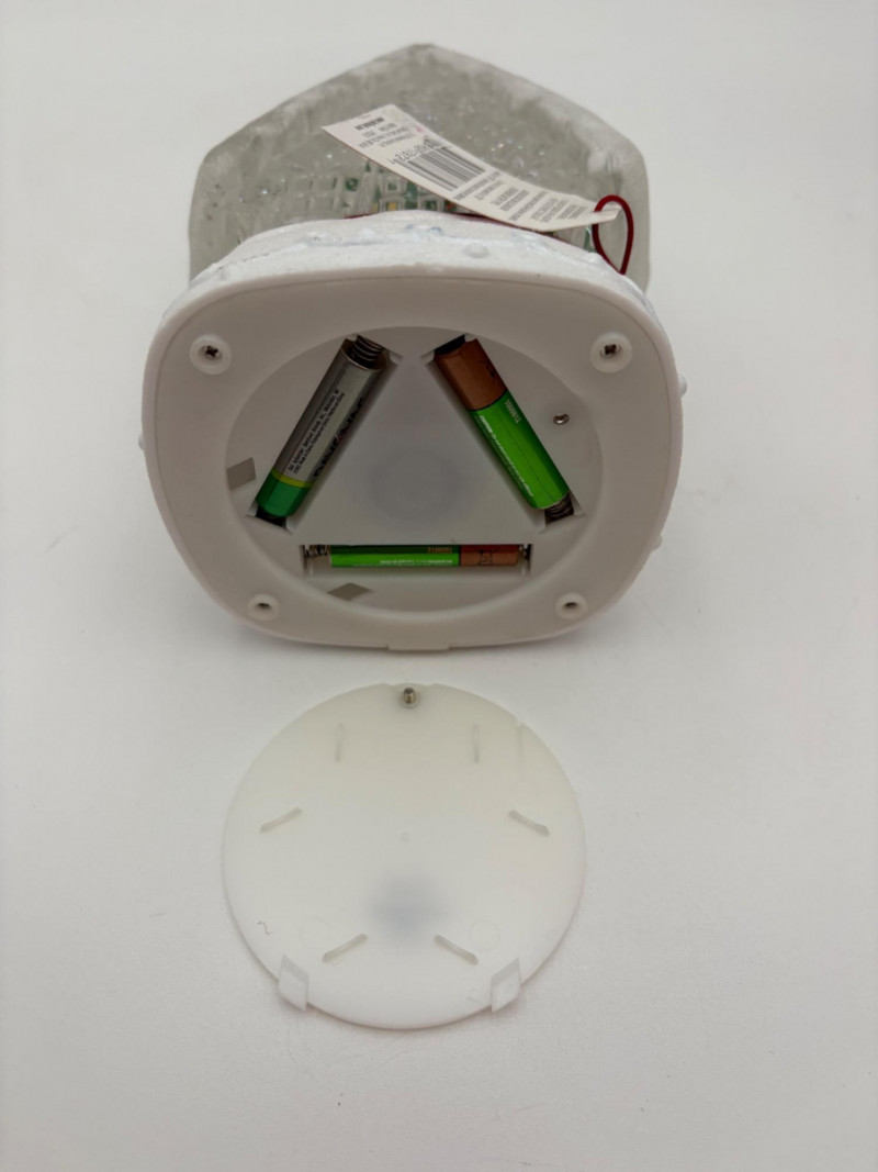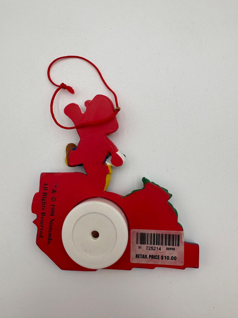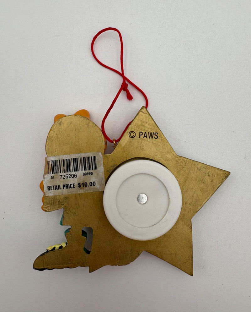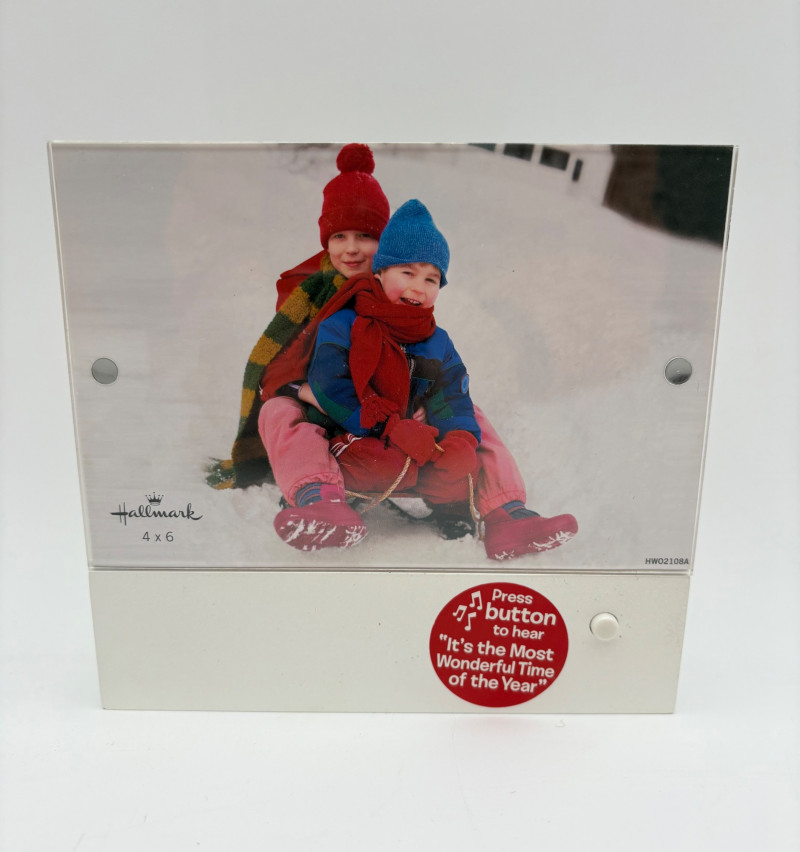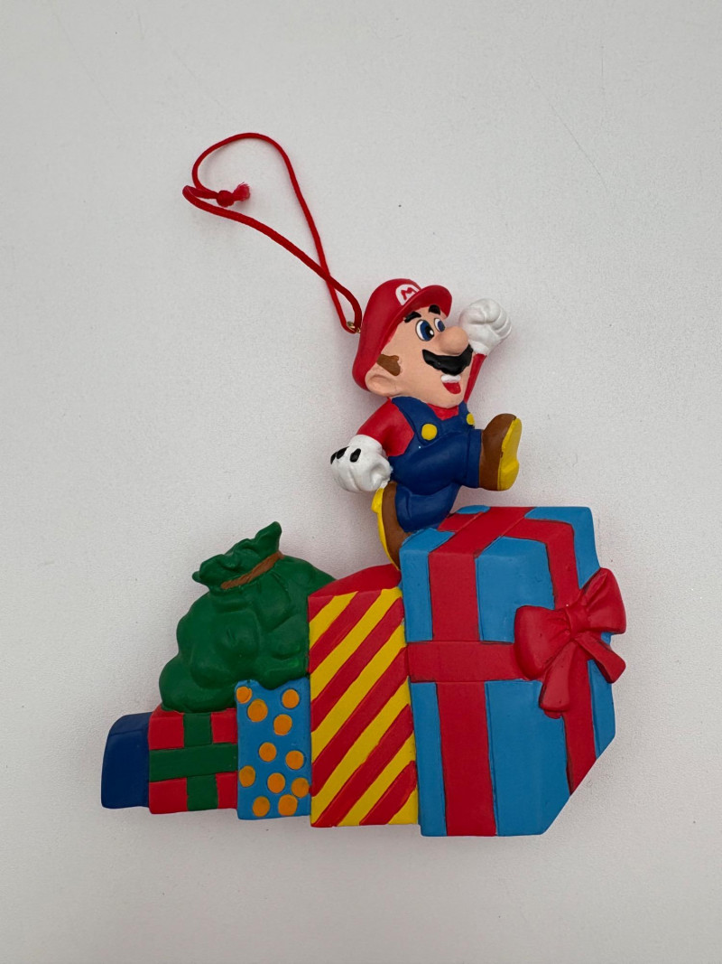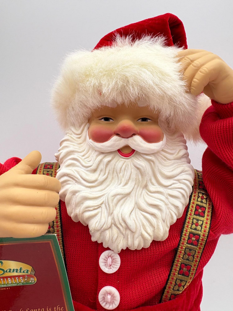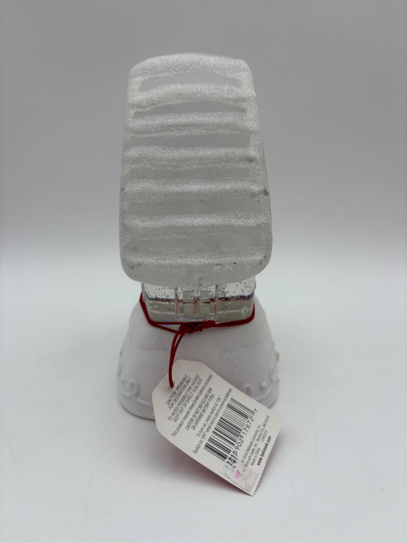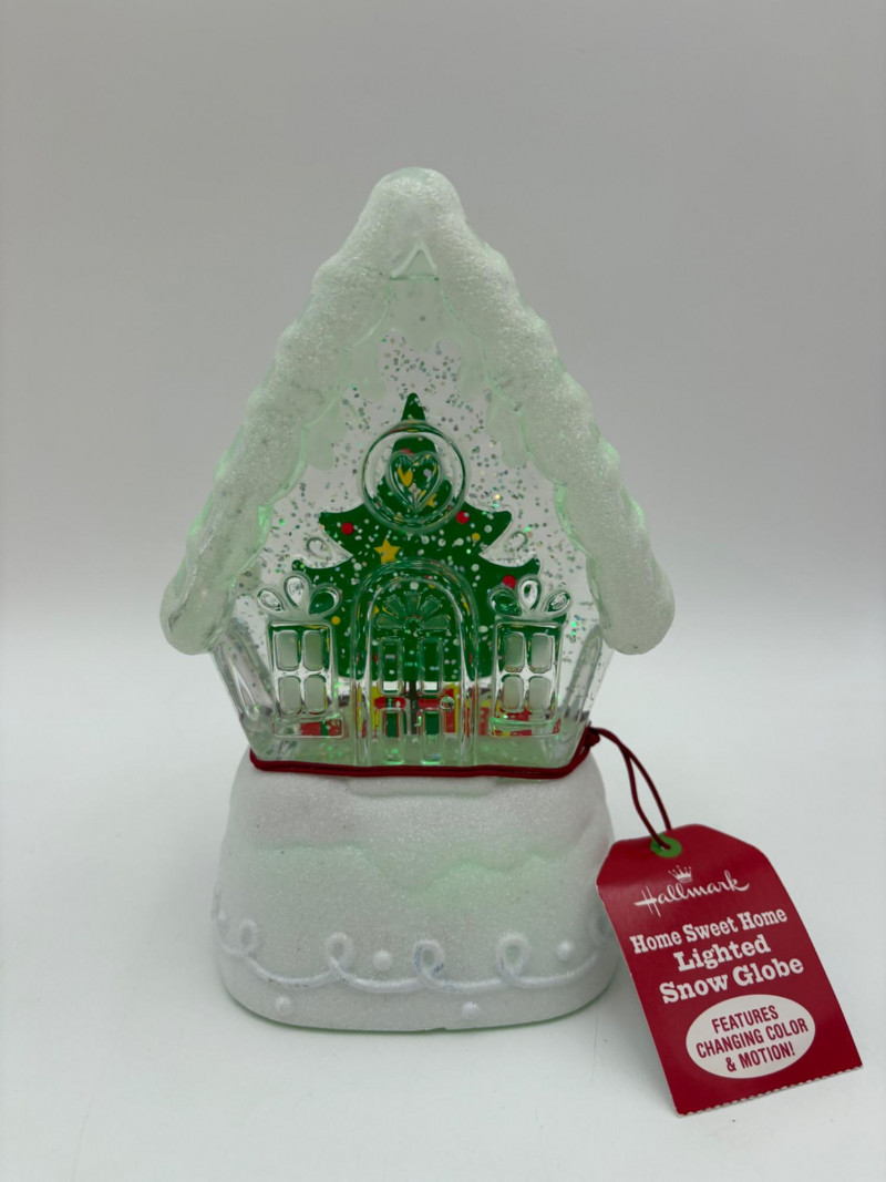 Lot of "old school" decorations that all either light up, make noise, or both! - Rockin' Santa from Christmas Fantasy Ltd. wiggles his hips to the beat of Jingle Bell Rock. Used very little if at all. Adapter and on-off switch at the rear of the feet. Measures 14" H. From 1998. - Vintage windup spinning Santa head. Turn the base to wind up and he plays "Jingle Bells" as he slowly spins. Measures approx. 8 " H. Some slight discoloration at seams from age - See photos. From 1973. - Pair of Hallmark photo music boxes - remove the Plexi square, put your photo behind it & replace it (magnetic). Touch the player button and you can hear "It's the most Wonderful Time of the Year" or "Jingle Bell Rock". Great grandparent gift! Appear to be new and both tested fine - each uses 2 AAA batteries. They measure 6" square and hold 4" x 6" photos. - Hallmark light-up "globe" in the shape of a home with swirling snow and changing colors. Works fine with 3 AAA batteries but is a tad noisy in a silent room (probably wouldn't notice, but our booth was super quiet today!). Tree is equally visible from front or back and pump swirls snow while changing colors. From 2010. - Milton Berle TV ornament from Carlton Cards lights up and plays dialogue from the show. Measures approx. 4' H and runs on 3 AAA batteries. From 2003. - 3 pushbutton ornaments featuring Charlie Brown, Garfield, and Mario. All play a little ditty when the button on the back is pushed. They measure about 4" H. From the late 1990s. - Santa Claus cookie jar from Target Home - head lifts off. Measures 11" H. Appears new. OK - this item doesn't light up or make noise, but if you eat cookies in it you may light up and say "Yum."
