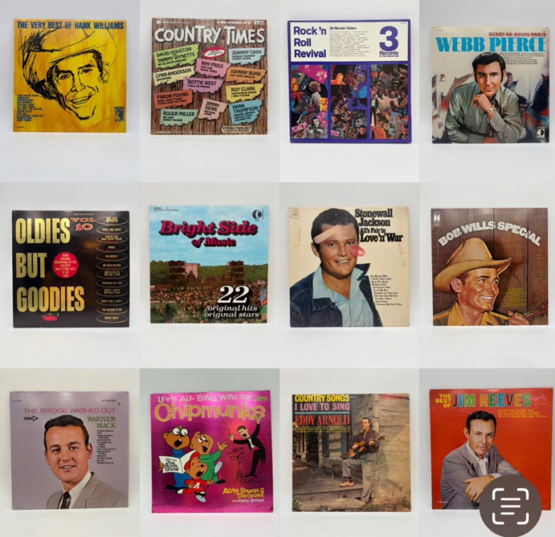 12 vintage LPs for your retro turntable! Our clients LOVED classic country music, Elvis, and popular music of the 1960s/1970s. Their records were well-loved and unless otherwise indicated as "new in packaging", were played a fair amount - check the photos to see which LPs are included in this lot.* Artists in this lot include: Hank Williams Jim Reeves Eddie Arnold The Chipmunks Warner Mack Bob Wills Webb Pierce Stonewall Jackson +4 compilation albums entitled: Country Time (double album) Bright Side of Music Oldies But Goodies - Volume 10 Rock ‘n’ Roll Revival (triple album) *Please note that we checked to make sure the correct record was in the correct sleeve, but we did not test for condition.