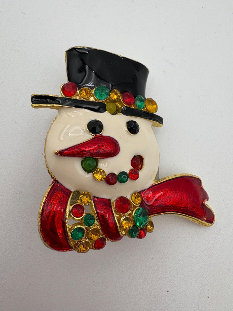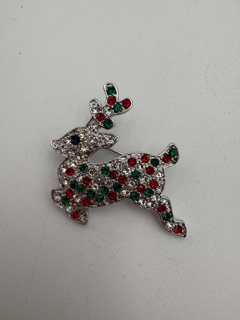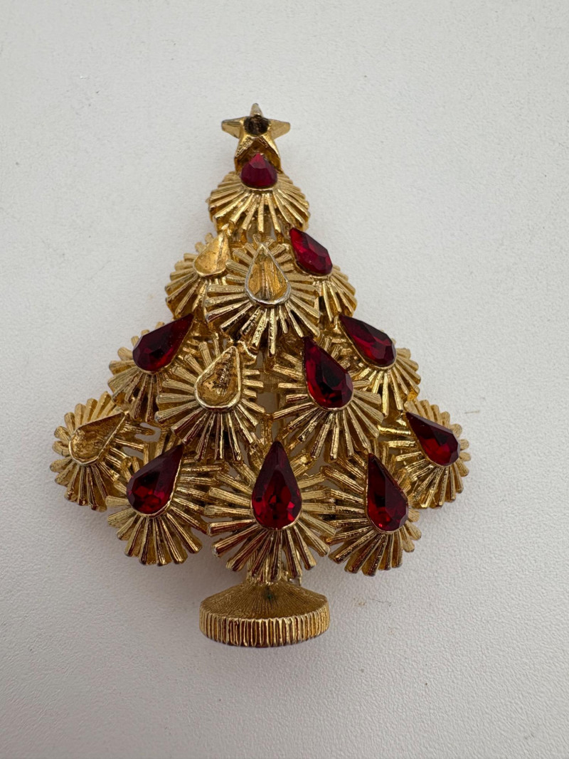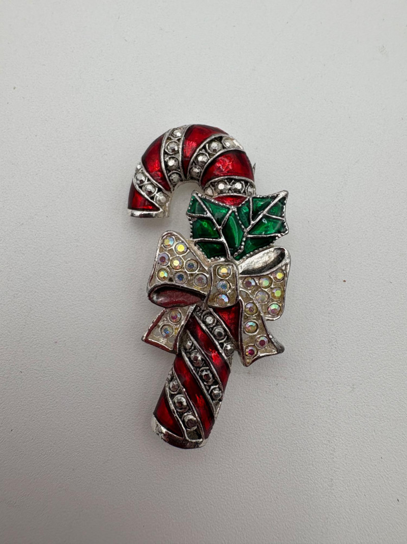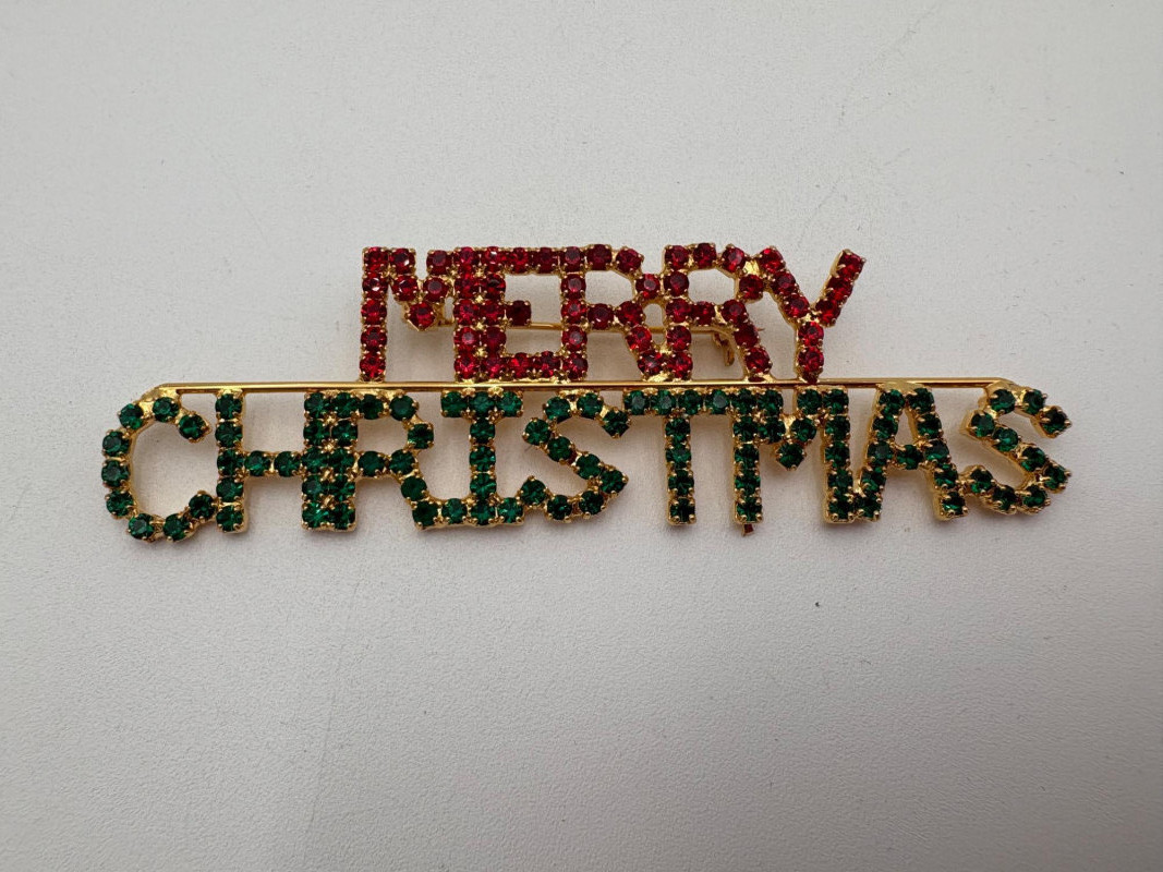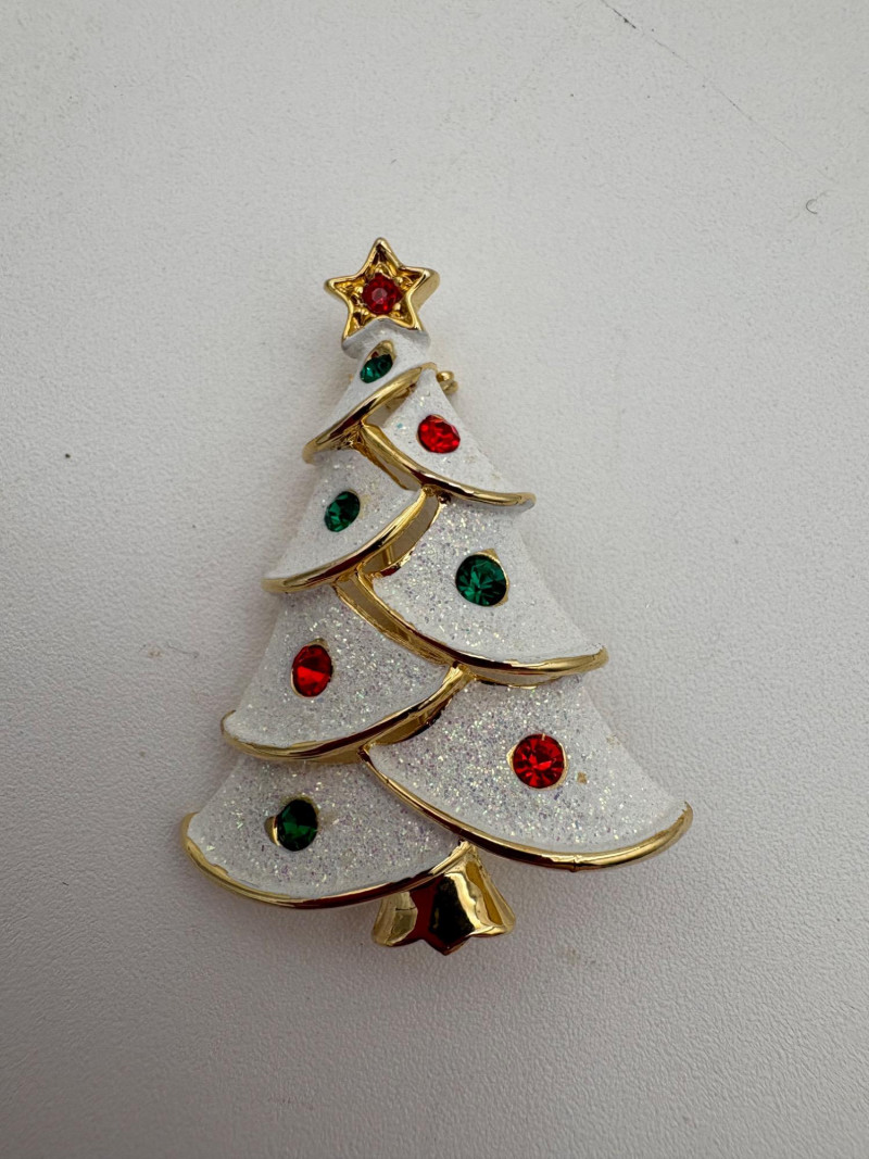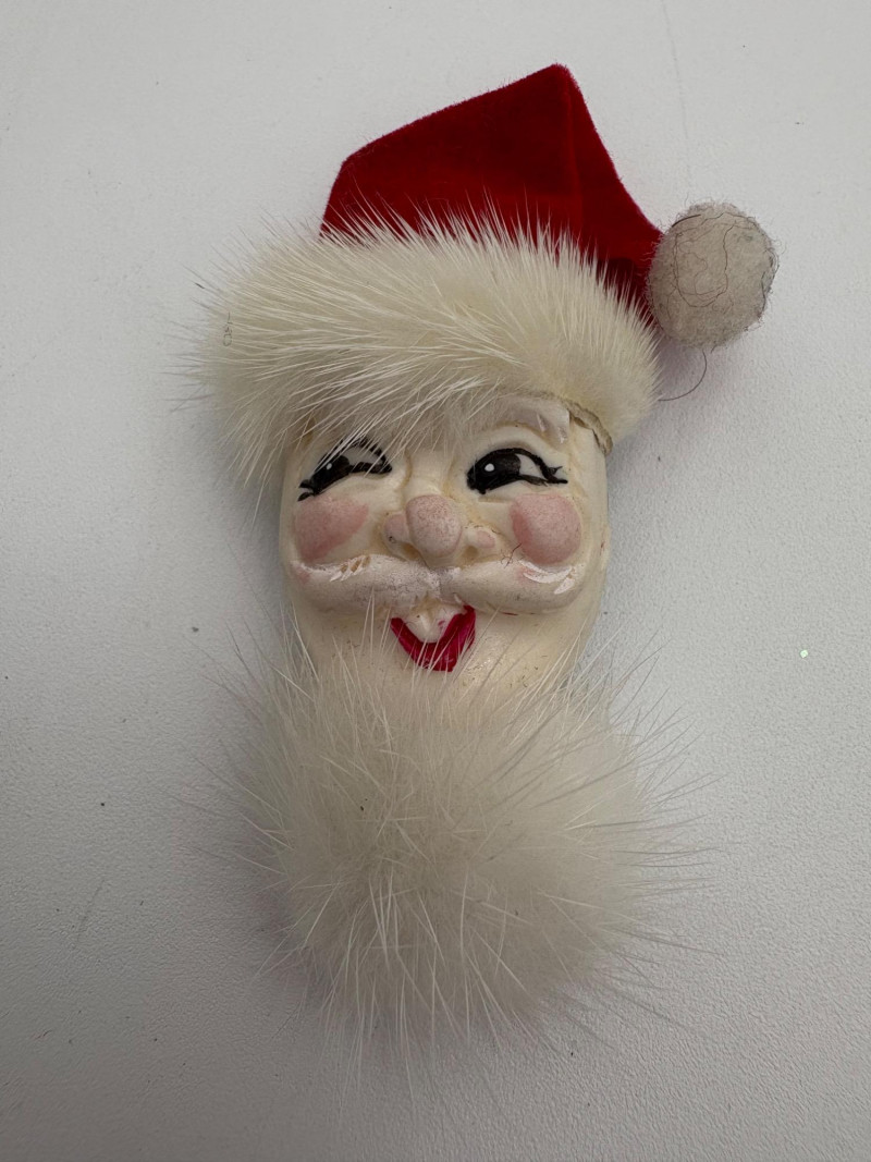 Large group of mixed vintage and newer Christmas themed pins. Some excellent vintage Christmas trees (the last one still has a price of $37 on the reverse) and we love the furry Santa face. Other pieces are just for novelty made of plastic. Please look at photos closely - a couple of pieces are missing a stone or two, but they are not really noticeable when taken as a whole.