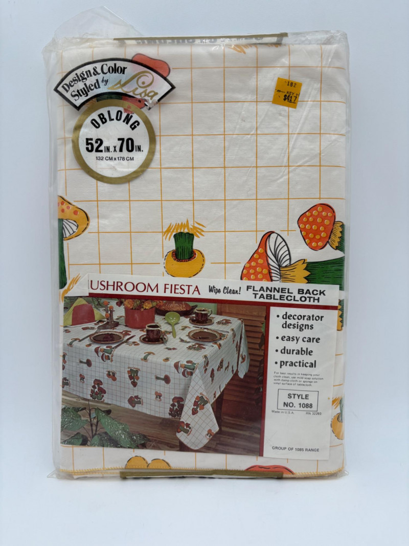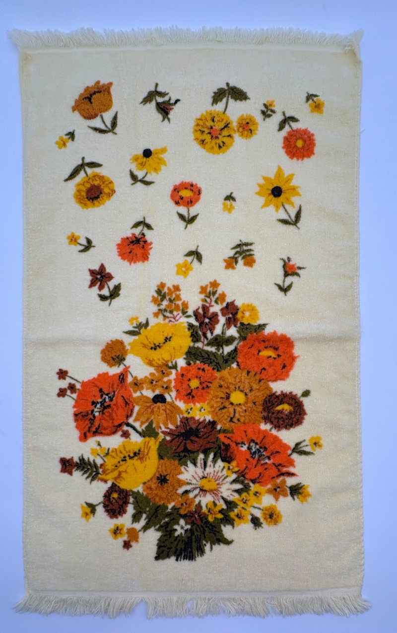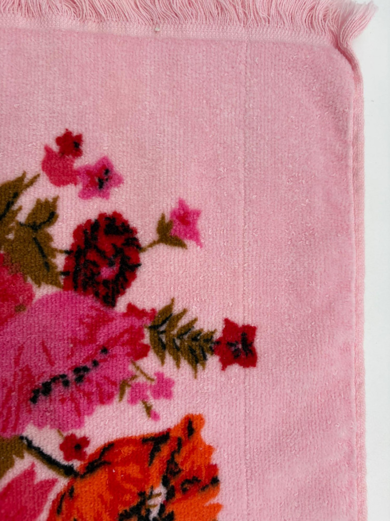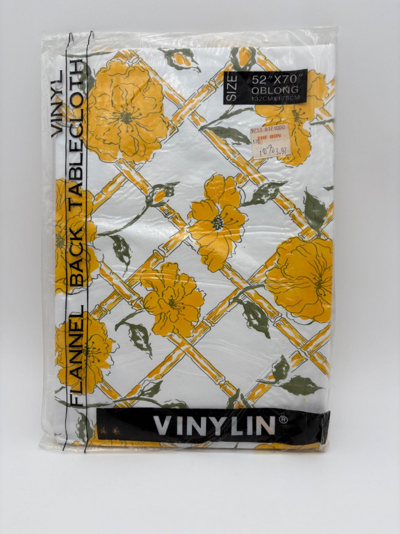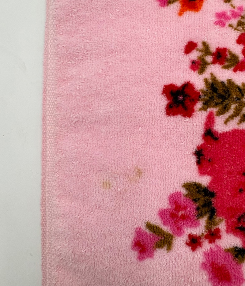 This is a wonderful group of "old school" floral terrycloth towels and vinyl tablecloths with flannel backing. We think all items are from the 1970s/1980s (Sprouse-Reitz changed its name to just "Sprouse" in 1989, so these are pre-1989 given the price tags). The towels were stored for many years in an open box and were quite dusty, so we need to wash them to do them justice. They were new before we laundered them (they had that stiff feel new towels used to have) and many still had their price tags attached - see blue background photo. PINK TOWELS - 4 bath towels, 3 hand towels, and 3 washcloths. 3 small flaws noticed: dark spot on one bath towel and a misweave on 2 of the hand towels. - see last 3 photos. YELLOW TOWELS (more lemony in color than the photos show) - 4 bath towels, 4 hand towels, and 1 washcloth. 1 small flaw noticed: misweave on 1 hand towel - see 4th from last photo. BONUS A solid yellow bath towel with floral hand towel & washcloth from Cannon were in the same box and were also new and laundered. They go quite well with the yellow set above (not pictured) TABLECLOTHS - 4 variously patterned vinyl tablecloths - all measure 52" x 70" and all are unused in their original packaging. BONUS: 5th tablecloth from the same box that appears to have slight damage (not pictured)