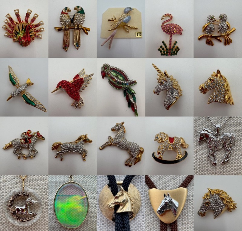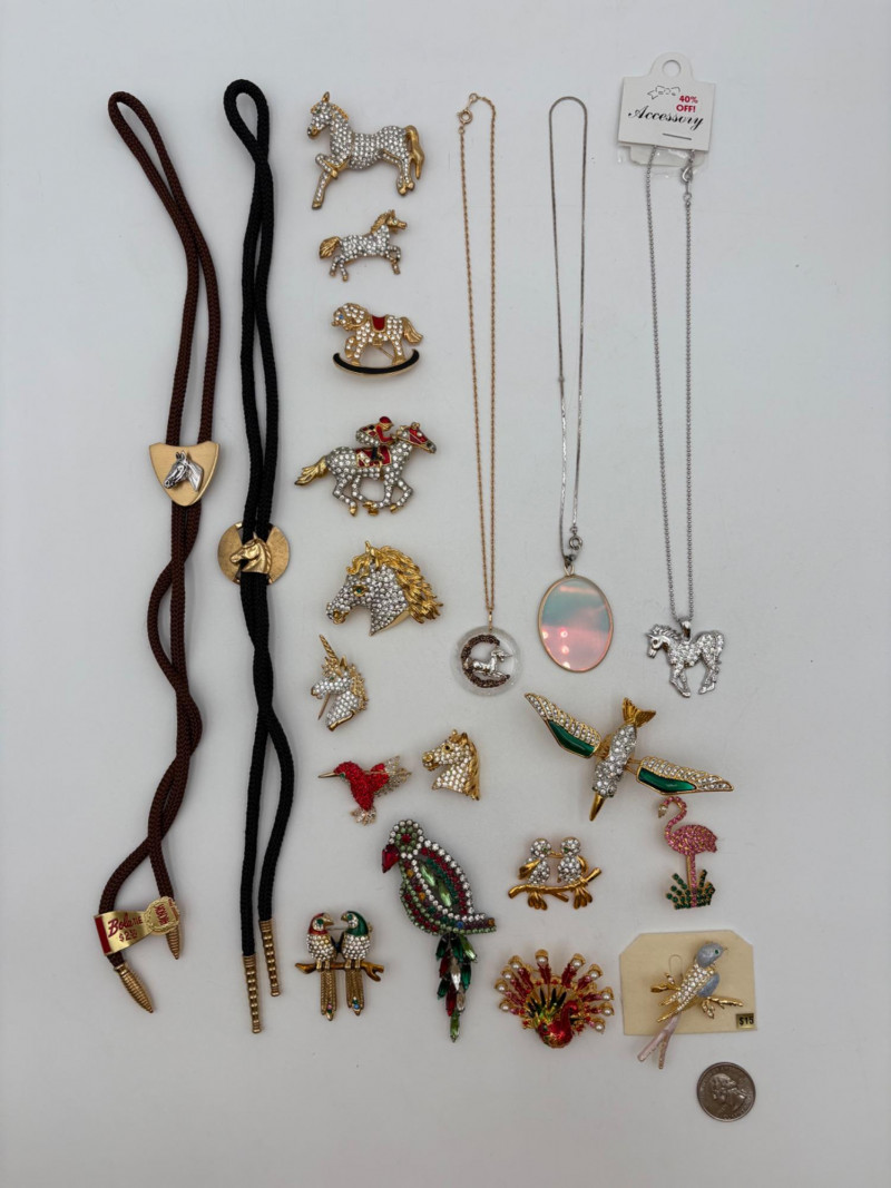 Lot # 52 - Birds & Horses (+ Cousins) - Vintage & Not - Sparkly Costume Jewelry