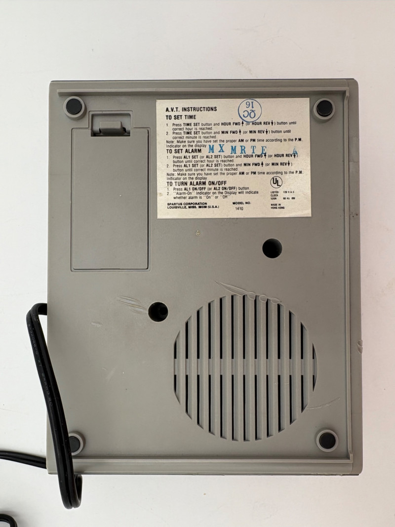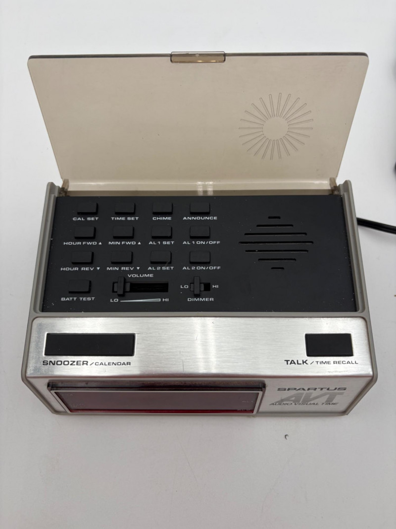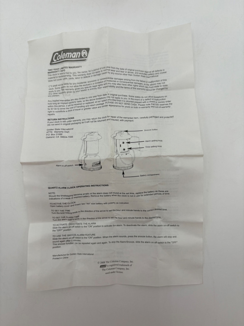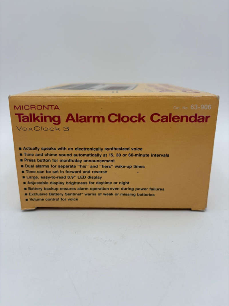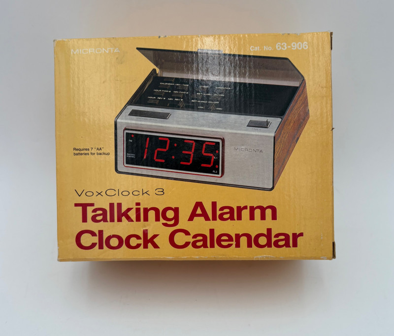 Quartet of vintage clocks from the 1970s/1980s with familiar brand names/characters that will take you back to childhood. Paired with a terrific Miss Piggy calendar. CLOCKS: Strawberry Shortcake Quartz wall clock from Welby by Elgin. New in original shrinkwrap - this square shape appears to be rather rare on the retail market. Measures approx. 8.5" square x 2.5" D. Model #E8125. Kermit the Frog wind-up alarm clock from Timex. Wound it up and it keep good time. Measures approx. 4.5" square x 2" D. Model #95601. Coleman lantern clock (this one is fairly new - from 2008) with glow--in-the-dark hands, top snooze light, & on/off switch at base. Measures approx. 10" with handle up - body is 6.5" H. Talking Alarm/Calendar electric clock from Micronata (for Radio Shack) is a VoxClock 3 Audio/Visual/Time model (#63-906). We think if it's not new, it's nearly new (we noticed one small scratch upon close inspection). Comes with original box and packaging along with original 9V battery (get a new one!). States the time clearly and appears to keep time - lots of different settings to play/program. Measures 2.5" H x 6.5" W x 5.5" D. CALENDAR Bonus: we found some cheesy Miss Piggy pins and a Kermit watch after lead photos were taken - watch needs new battery.